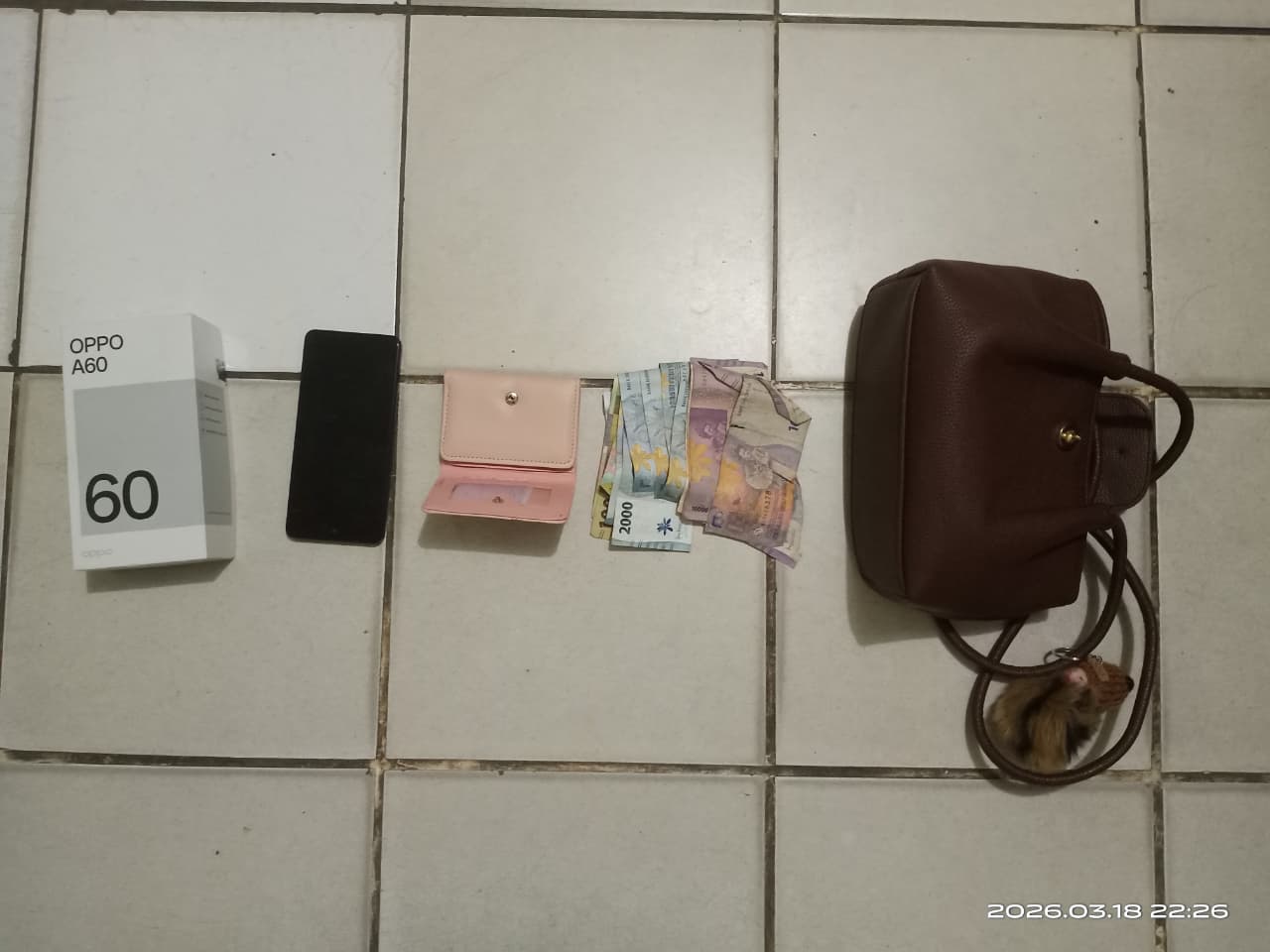 Selain itu, polisi juga mengamankan barang bukti lain berupa satu unit handphone Oppo A60 warna biru gelap dan satu buah dompet warna pink milik korban.
