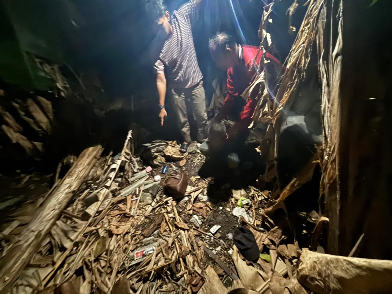 Petugas kemudian melakukan pengembangan dan berhasil menemukan barang bukti berupa tas warna coklat yang sempat dibuang pelaku di belakang rumah warga di sekitar lokasi persembunyian.