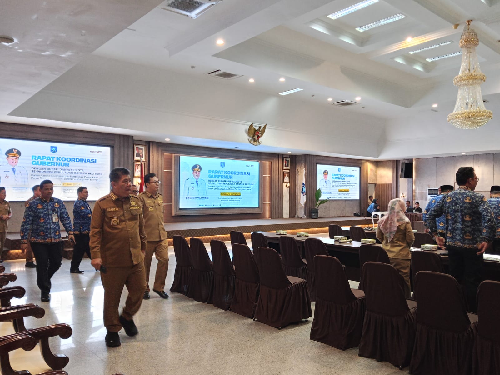 Pangkalpinang, kejarberitanews.com- Hidayat Arsani, Gubernur Kepulauan Bangka Belitung bersama seluruh Bupati dan Wali Kota Provinsi Kepulauan Bangka Belitung mengadakan rapat koordinasi peningkatan peran Bank Sumsel Babel dalam pembangunan Provinsi Kep.Babel di ruang rapat Pasir Padi lantai 3, kantor Gubernur pada Selasa (17/6).