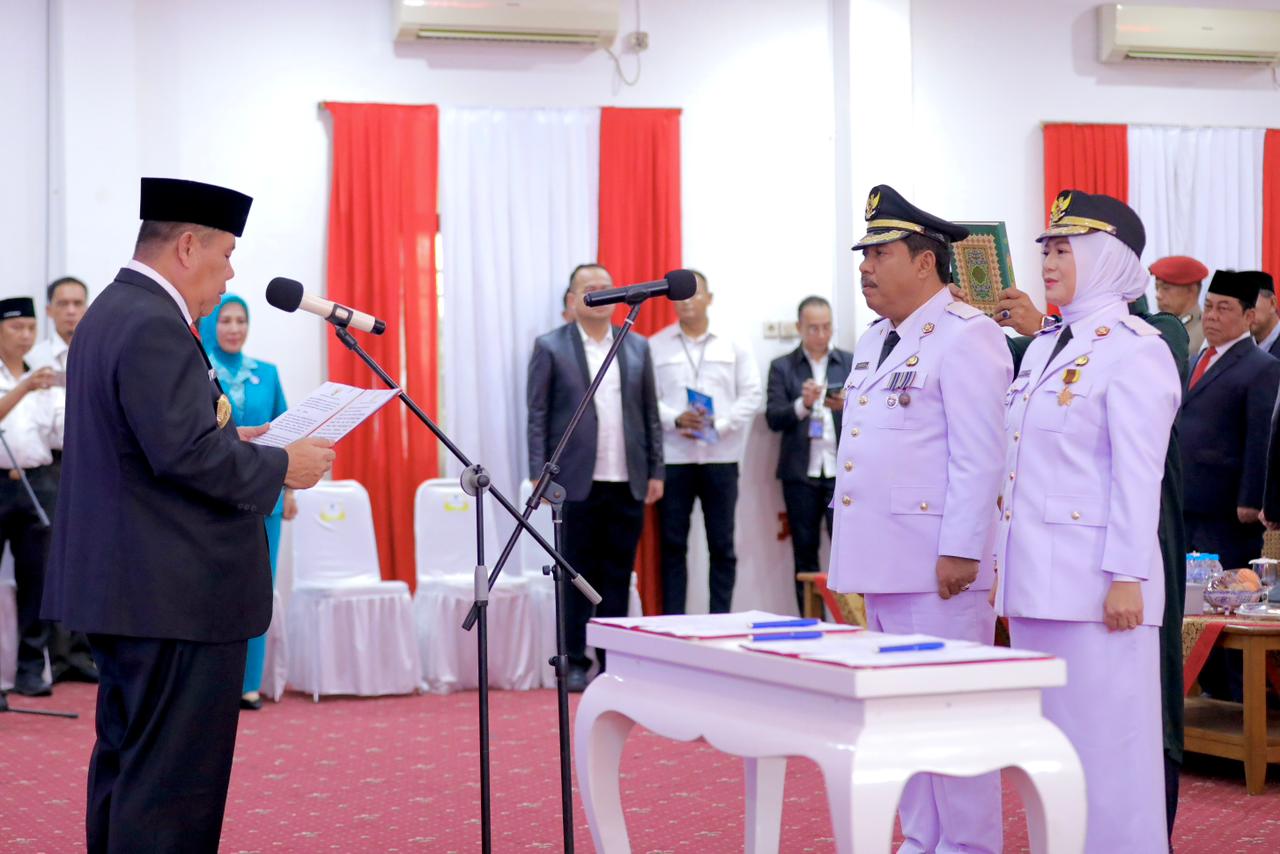 Pangkalpinang, kejarberita-news.com – Gubernur Kepulauan Bangka Belitung (Babel) Hidayat Arsani secara resmi melantik dan mengambil sumpah jabatan Wali Kota dan Wakil Wali Kota Pangkalpinang terpilih hasil pemilihan ulang tahun 2025, yakni Prof. Saparudin dan Desi Ayutrisna. Pelantikan berlangsung Rabu (15/10/2025) di Balai Besar Betason, Gedung Tudung Saji, Sekretariat Daerah Kota Pangkalpinang, dengan disaksikan para tokoh masyarakat, anggota DPR RI dan DPD RI Dapil Babel, Forkopimda Provinsi dan Kota, serta tamu undangan.