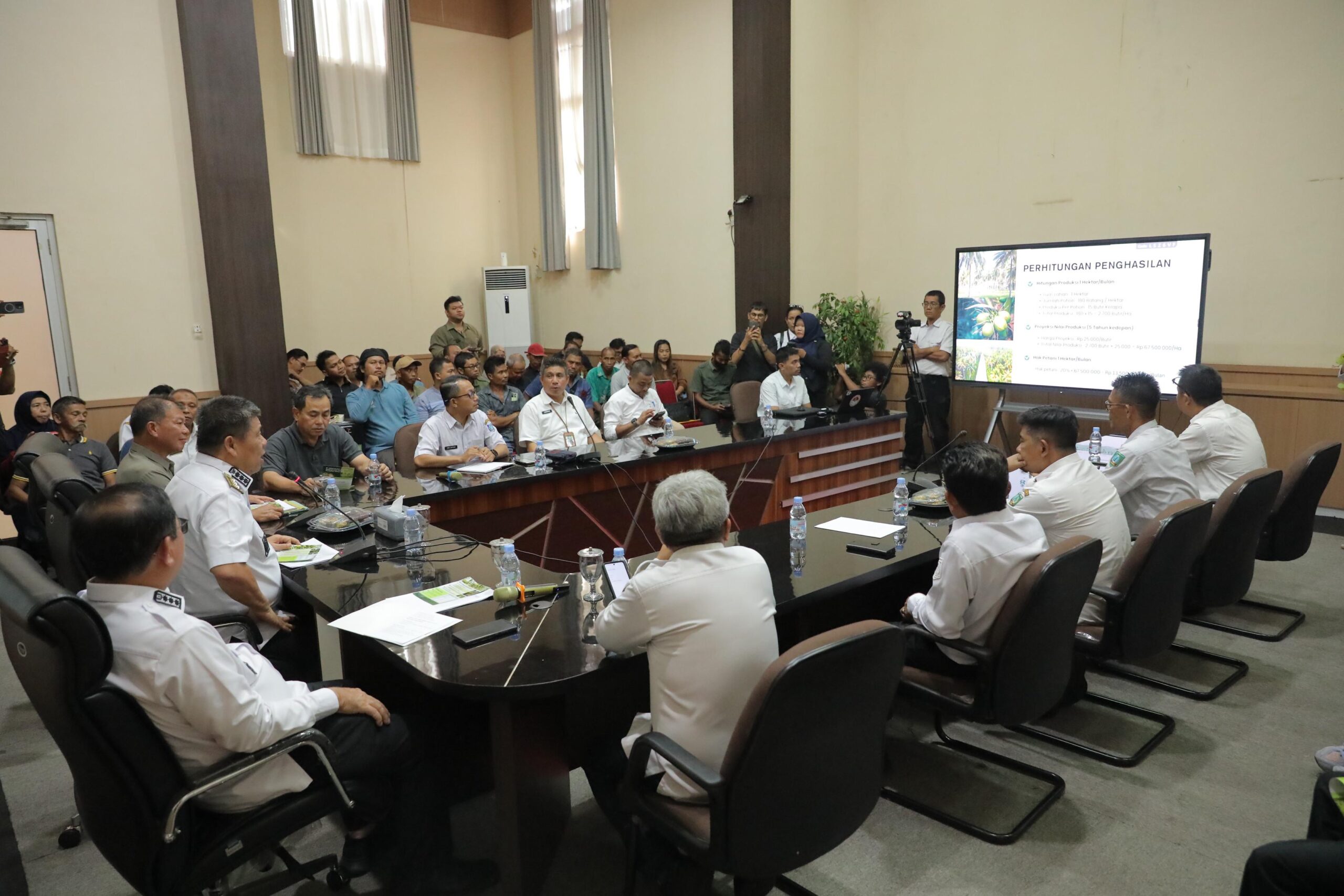 Didampingi Bupati Belitung Timur (Beltim) Kamarudin Muten, beserta perwakilan dari PT Kebun Kelapa Indonesia sebagai calon investor, mereka mengundang puluhan perwakilan kelompok tani yang ada di Beltim untuk melakukan pemaparan di Ruang Rapat Bupati Beltim, Rabu (13/8/2025).