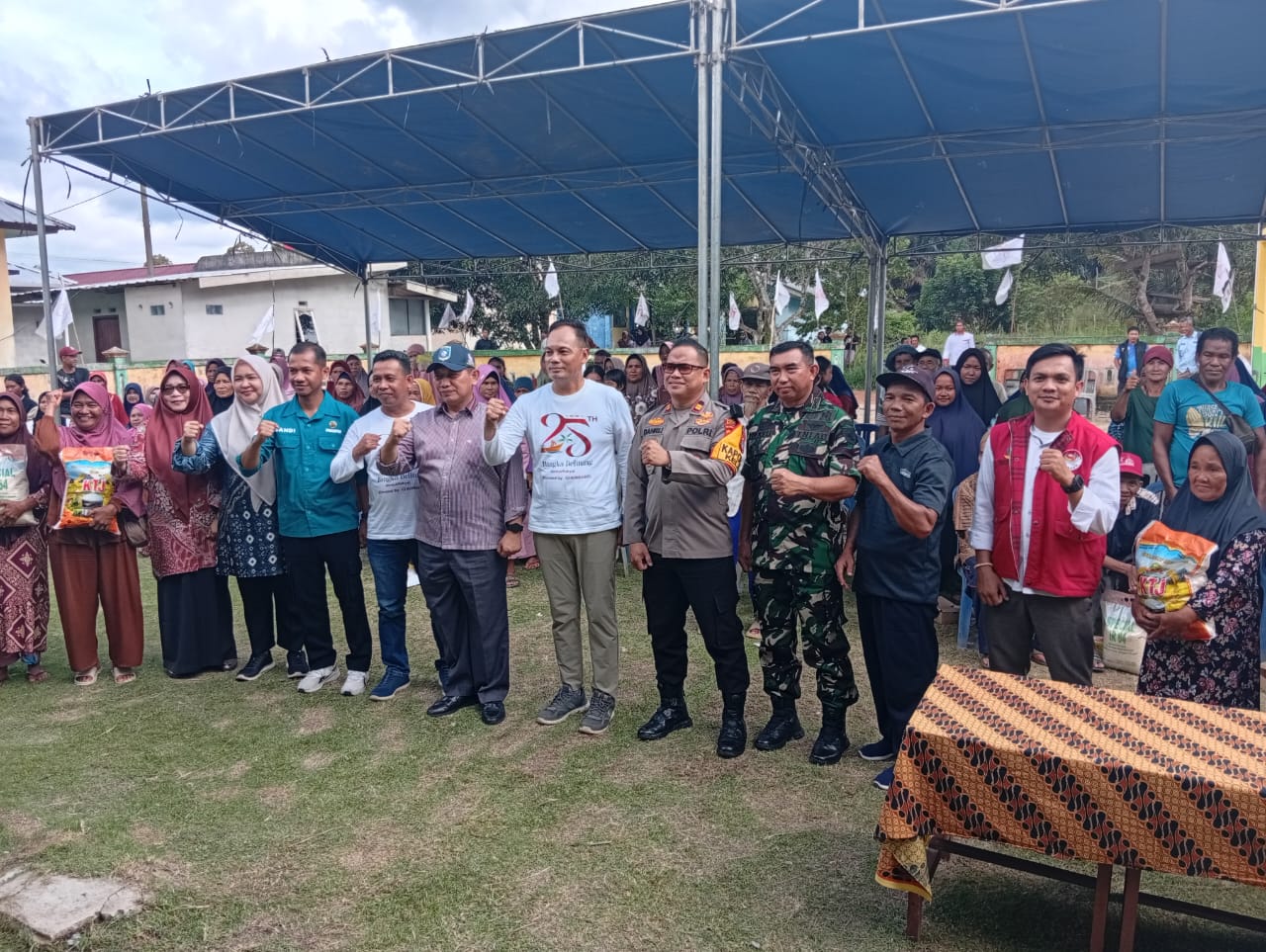 Danramil menyampaikan”Kegiatan pembagian sembako ini merupakan wujud kepedulian pemerintah daerah bersama TNI terhadap kesejahteraan masyarakat dalam rangka memperingati Hari Jadi ke-25 Provinsi Kepulauan Bangka Belitung.