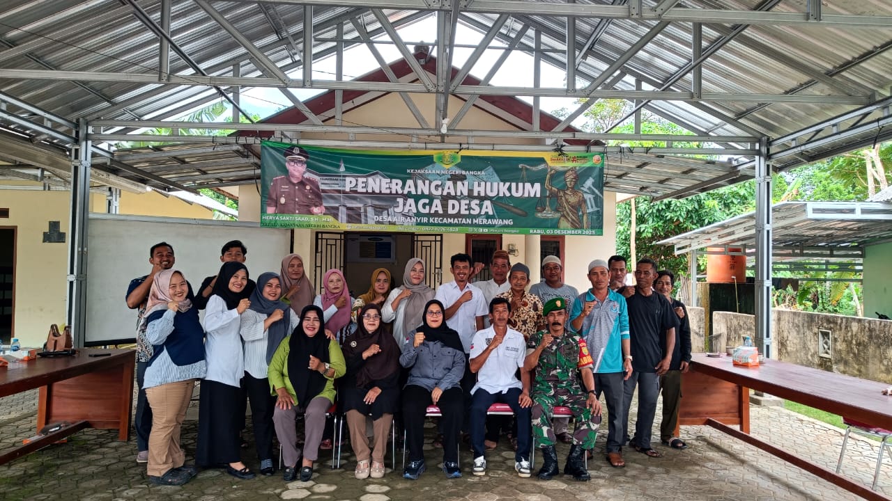 Babinsa Koramil 413-03/Merawang, Serka Sukaryono, menghadiri undangan kegiatan “Jaga Desa” yang diselenggarakan oleh Kejaksaan Negeri Bangka di Desa Airanyir, Kecamatan Merawang, Rabu (03/12/2025)