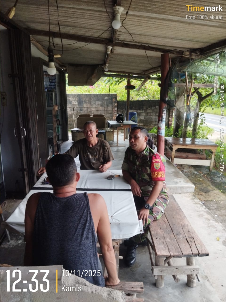 Bangka, kejarberita-news.com – Dalam upaya menjaga stabilitas keamanan dan ketertiban masyarakat (Kamtibmas), Babinsa Kelurahan Lubuk Kelik, Serka M. Simanjuntak, aktif melaksanakan Komsos dengan warga binaannya di lingkungan RT 03 Kelurahan Lubuk Kelik, Kamis (13/11/2025)