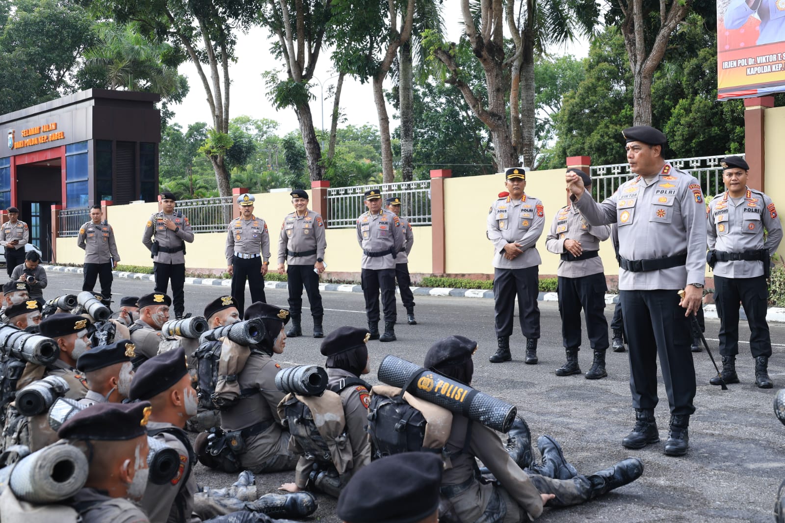 Pangkalpinang, kejarberitanews.com – Kapolda Kepulauan Bangka Belitung, Irjen Pol. Viktor T. Sihombing, berikan arahan khusus kepada 53 Bintara Remaja angkatan 53/58 Direktorat Samapta Polda Babel. Arahan ini disampaikan dalam rangkaian upacara Hari Kesadaran Nasional yang dirangkaikan dengan tradisi pembaretan dan pemberian penghargaan bagi personel berprestasi di halaman Mapolda Babel, Rabu (18/02/26) pagi.