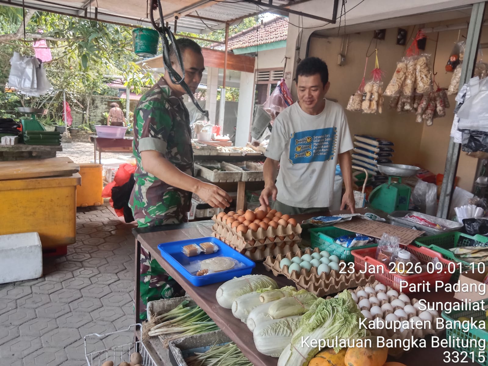 Bukit Betung, kejarberita-news.com – Dalam upaya memastikan ketersediaan kebutuhan pokok di wilayah binaan, Babinsa Kelurahan Bukit Betung Koramil 413-01/Sungailiat, Sertu Erwendy, melaksanakan kegiatan Komsos dengan menyambangi pelaku usaha di Jalan Imam Bonjol, Jumat (23/01/2026).