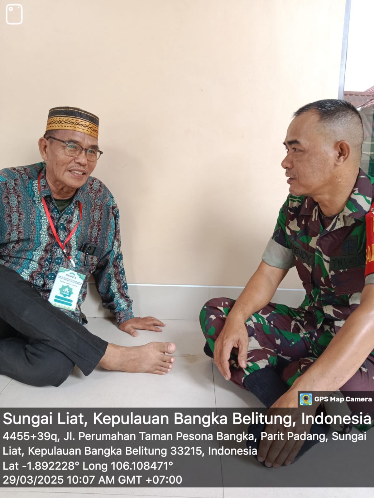 Sungailiat,kejarberitanews.com-Bertempat di Masjid Syahidul Mukhlisin sertu erwendy pastikan kegiatan zakat berjalan lancar di taman pesona bangka kelurahan bukit betung kecamatan sungailiat, Sabtu (29/03/2025)