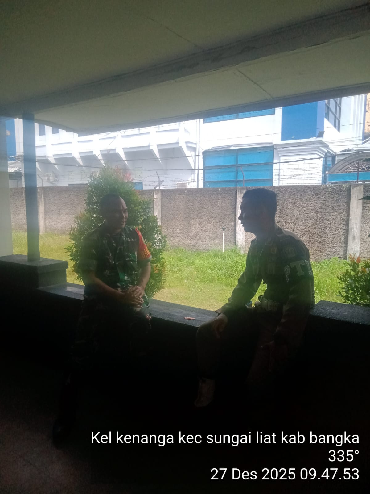 Bangka, kejarberita-news.com – Guna memastikan situasi wilayah tetap kondusif di tengah musim penghujan, Babinsa Koramil 413-01/Sungailiat, Sertu Syahrul Watoni, melaksanakan kegiatan Komsos bersama anggota Satpol PP Kabupaten Bangka, Bapak Doni, di Kelurahan Kenanga, Sabtu (27/12/2025).