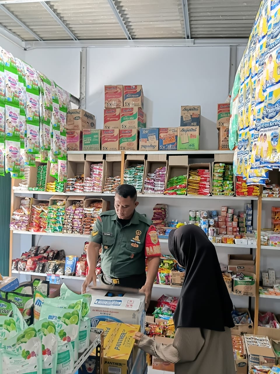 Sertu Sartiman berdialog langsung dengan pemilik toko, Bapak Zainal, untuk mencatat dan memverifikasi kondisi stok dan harga jual sembako kepada masyarakat. Hasil pengecekan menunjukkan harga-harga komoditas pokok masih terpantau stabil di tingkat desa