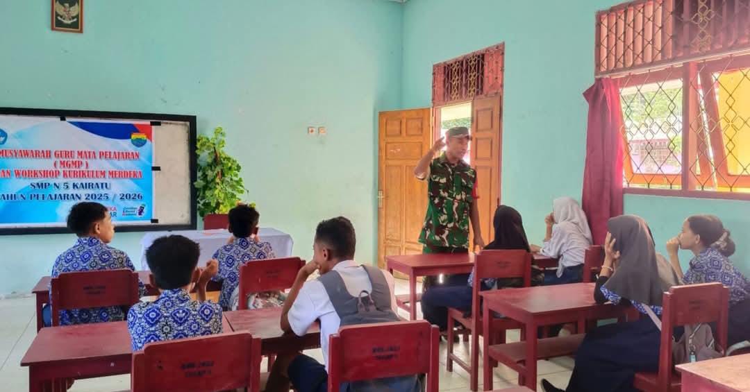 Kairatu, kejarberita-news.com – Babinsa dusun Siompu Air Buaya dari Koramil 03 Kairatu, Serka Irwan Walla, melaksanakan kegiatan pembinaan perlawanan wilayah melalui pemberian materi wawasan kebangsaan kepada siswa-siswi kelas 7A, Kamis (7/8).