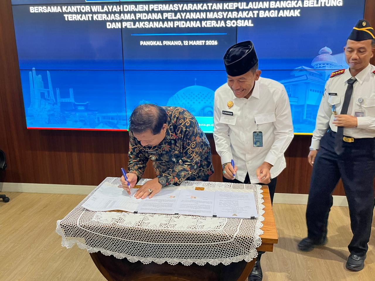 Pangkalpinang, kejarberitanews.com – Kantor Wilayah Direktorat Jenderal Pemasyarakatan Kepulauan Bangka Belitung melaksanakan kegiatan penandatanganan nota kesepakatan bersama dengan Pemerintah Kota Pangkalpinang terkait pelaksanaan pidana kerja sosial dan pidana pengawasan. Kegiatan tersebut berlangsung pada Kamis (12/03/2027) dan menjadi salah satu langkah awal dalam mempersiapkan implementasi kebijakan pemidanaan baru di Indonesia.