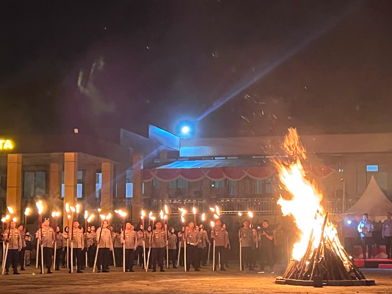 Prosesi ini sendiri dimulai dengan pembacaan ikrar serta penyalaan api obor yang dilakukan langsung oleh Kapolda diikuti Wakapolda serta para Pejabat Utama, Kapolres, Kapolsek jajaran serta seluruh Perwira.