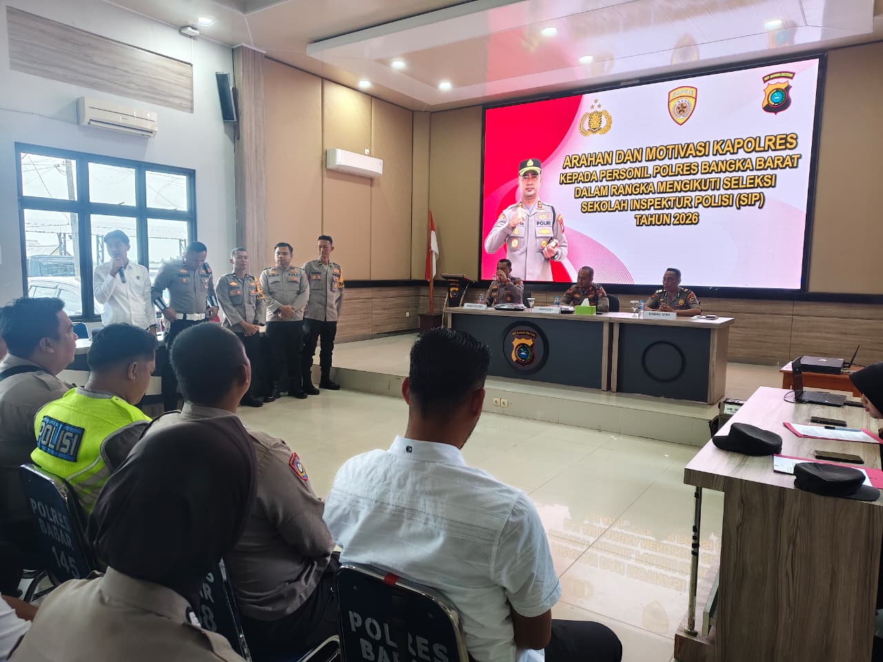 Bangka Barat, kejarberita-news.com – Kapolres Bangka Barat memberikan arahan dan motivasi kepada personel Polres Bangka Barat yang telah memenuhi syarat untuk mengikuti Seleksi Sekolah Inspektur Polisi (SIP) Tahun Anggaran 2026.
