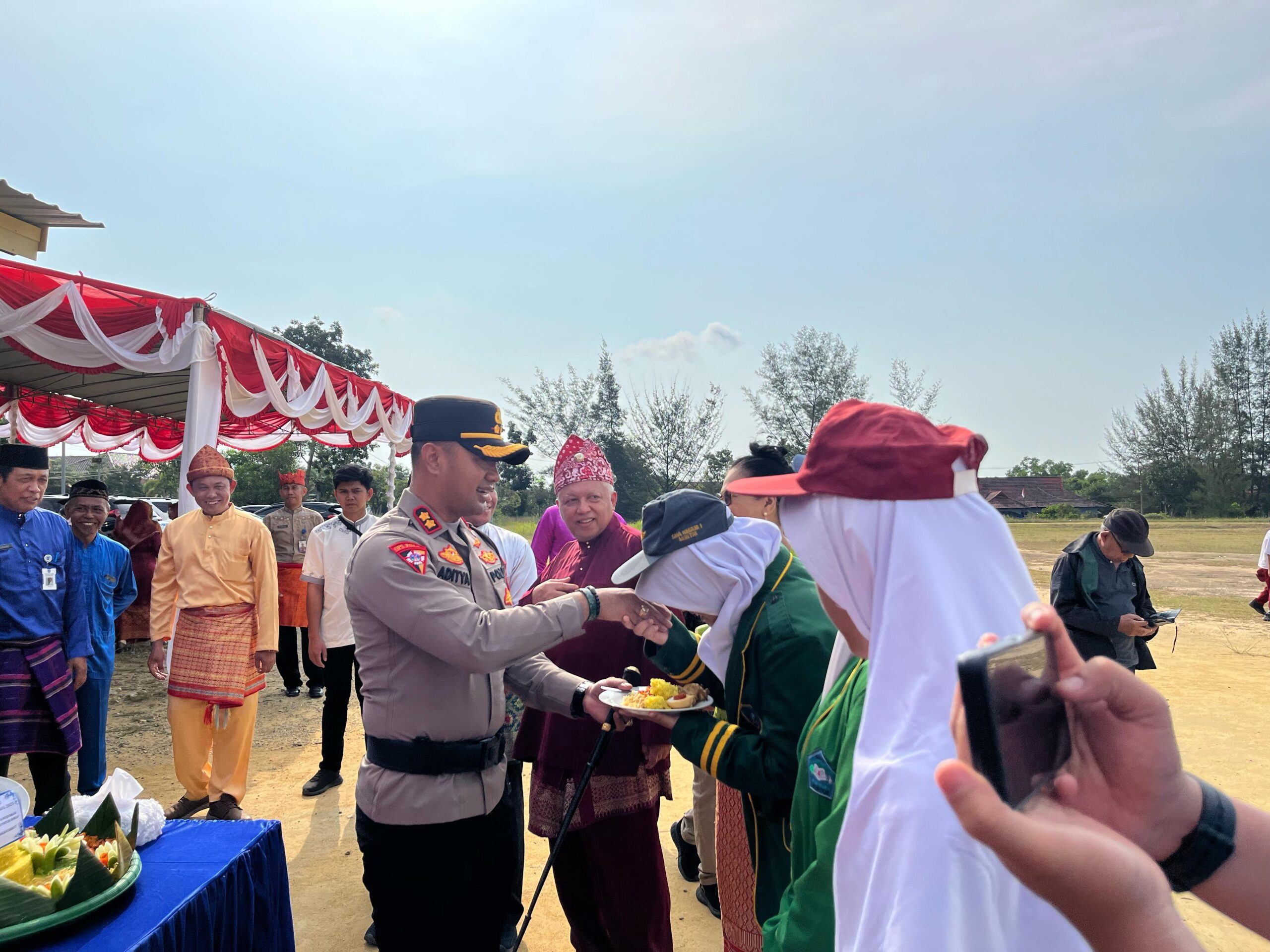 Usai upacara, suasana haru dan semangat kebersamaan semakin terasa ketika Kapolres memotong tumpeng sebagai simbol syukur dan penghargaan atas perjuangan para insan pendidikan.