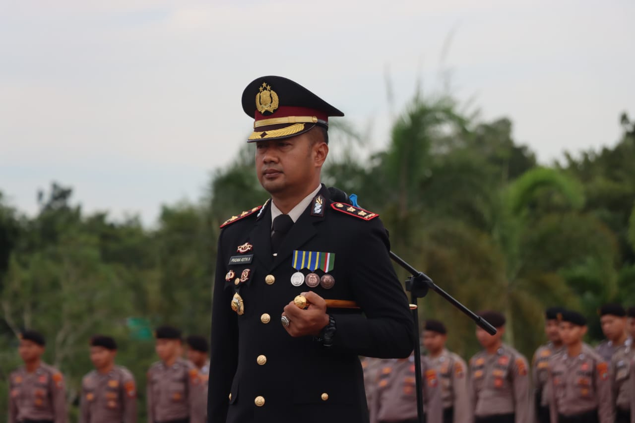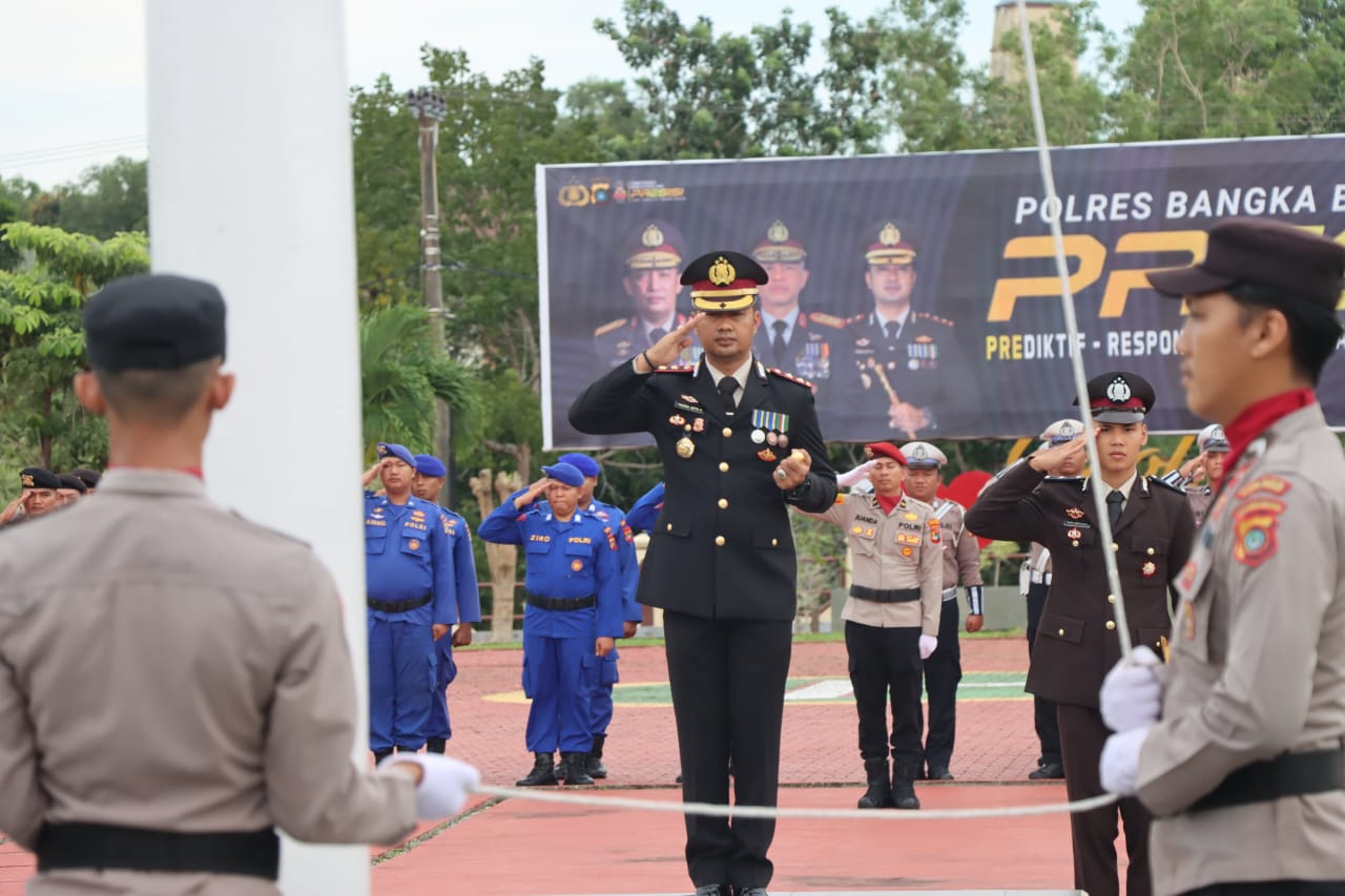 Upacara tersebut dipimpin langsung oleh Kapolres Bangka Barat, AKBP Pradana Aditya Nugraha, S.H., S.I.K., yang juga bertindak sebagai Inspektur Upacara.