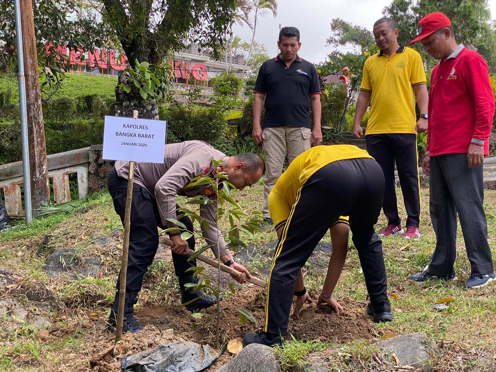 Tak berhenti pada seremoni, Kapolres Bangka Barat bahkan menyematkan harapan jangka panjang terhadap pohon yang ditanamnya. Ia menyampaikan keinginannya untuk kembali ke lokasi yang sama beberapa tahun ke depan, memastikan pohon tersebut tumbuh dan memberi manfaat.