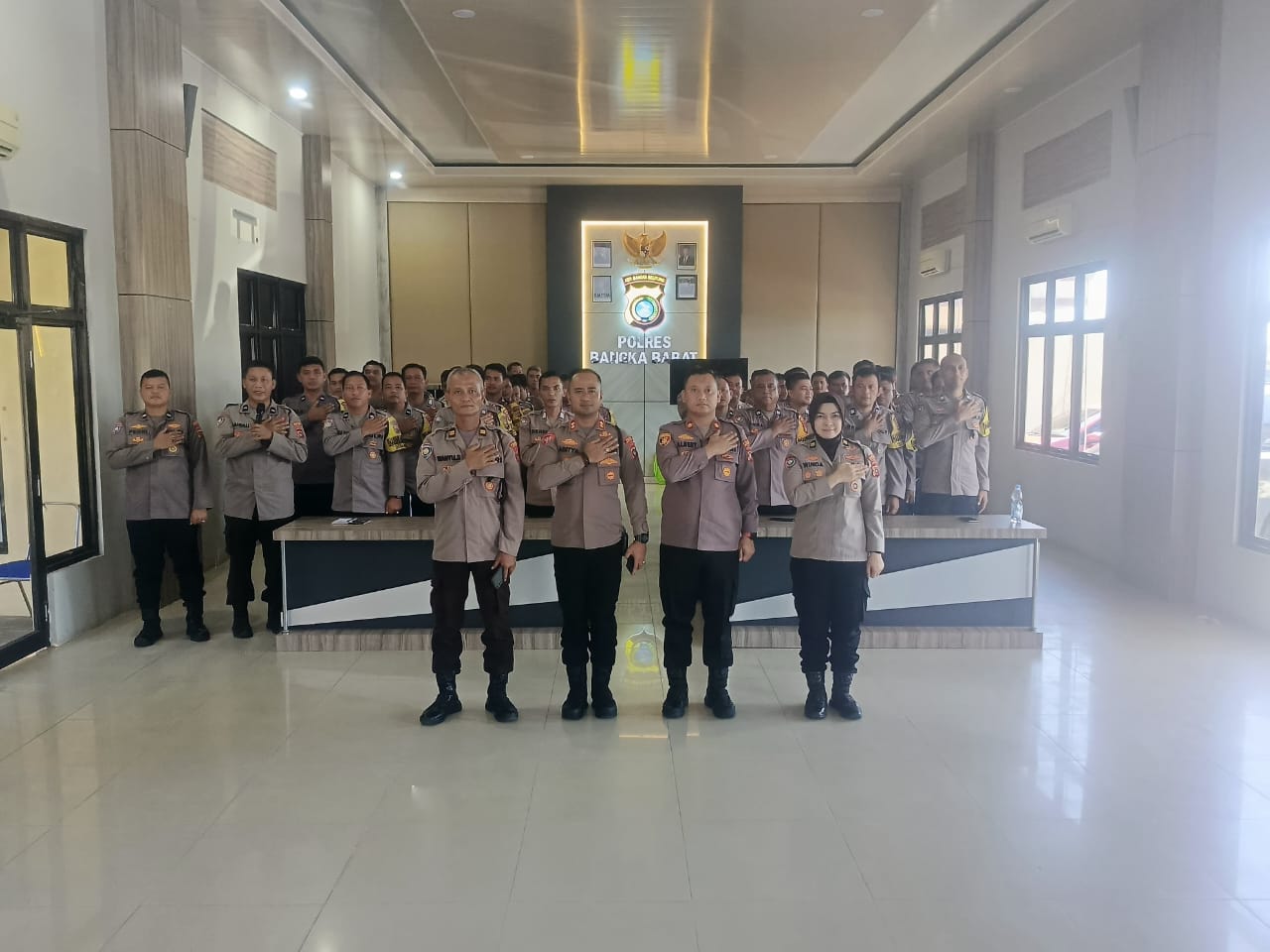 Kegiatan ini dihadiri langsung oleh Kapolres Bangka Barat AKBP Pradana Aditya Nugraha, S.H., S.I.K., Wakapolres, Para Kabag, Kasat, Kapolsek Jajaran serta seluruh Bhabinkamtibmas Polsek se-jajaran Polres Bangka Barat.