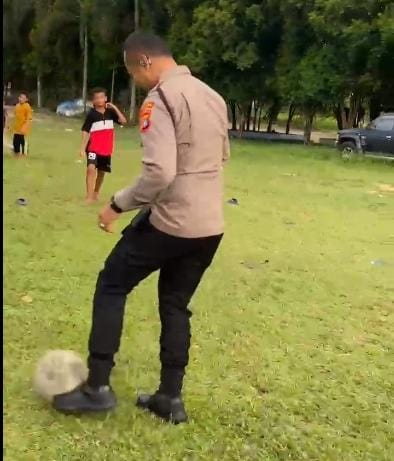 Dengan penuh semangat, anak-anak Mentok menyambut kehadiran dan partisipasi Kapolres di lapangan. Momen keakraban tersebut memperlihatkan sisi humanis seorang pimpinan kepolisian yang dekat dengan rakyat.