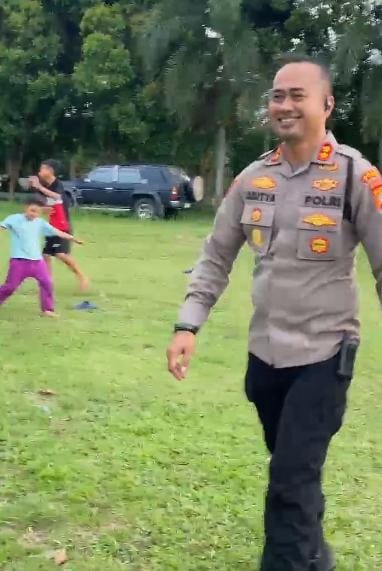 Dengan penuh semangat, anak-anak Mentok menyambut kehadiran dan partisipasi Kapolres di lapangan. Momen keakraban tersebut memperlihatkan sisi humanis seorang pimpinan kepolisian yang dekat dengan rakyat.