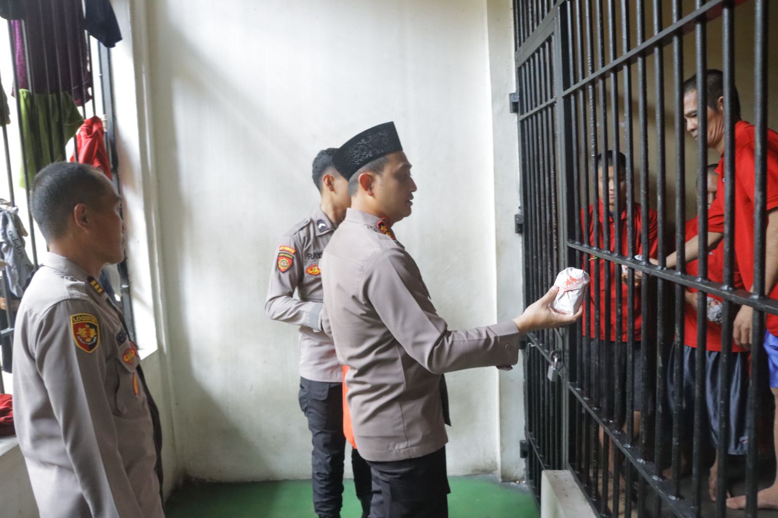 Bangka,kejarberitanews.com- Kapolres Bangka AKBP Deddy Dwitiya Putra dan Waka Polres Bangka Kompol Ayu Kusuma Ningrum beserta Pejabat Utama Polres Bangka lakukan pengecekan tahanan dan memberikan makan tambahan berupa Nasi Kotak. Bertempat di rumah tahanan Polres Bangka, jumat (23/5/2025).