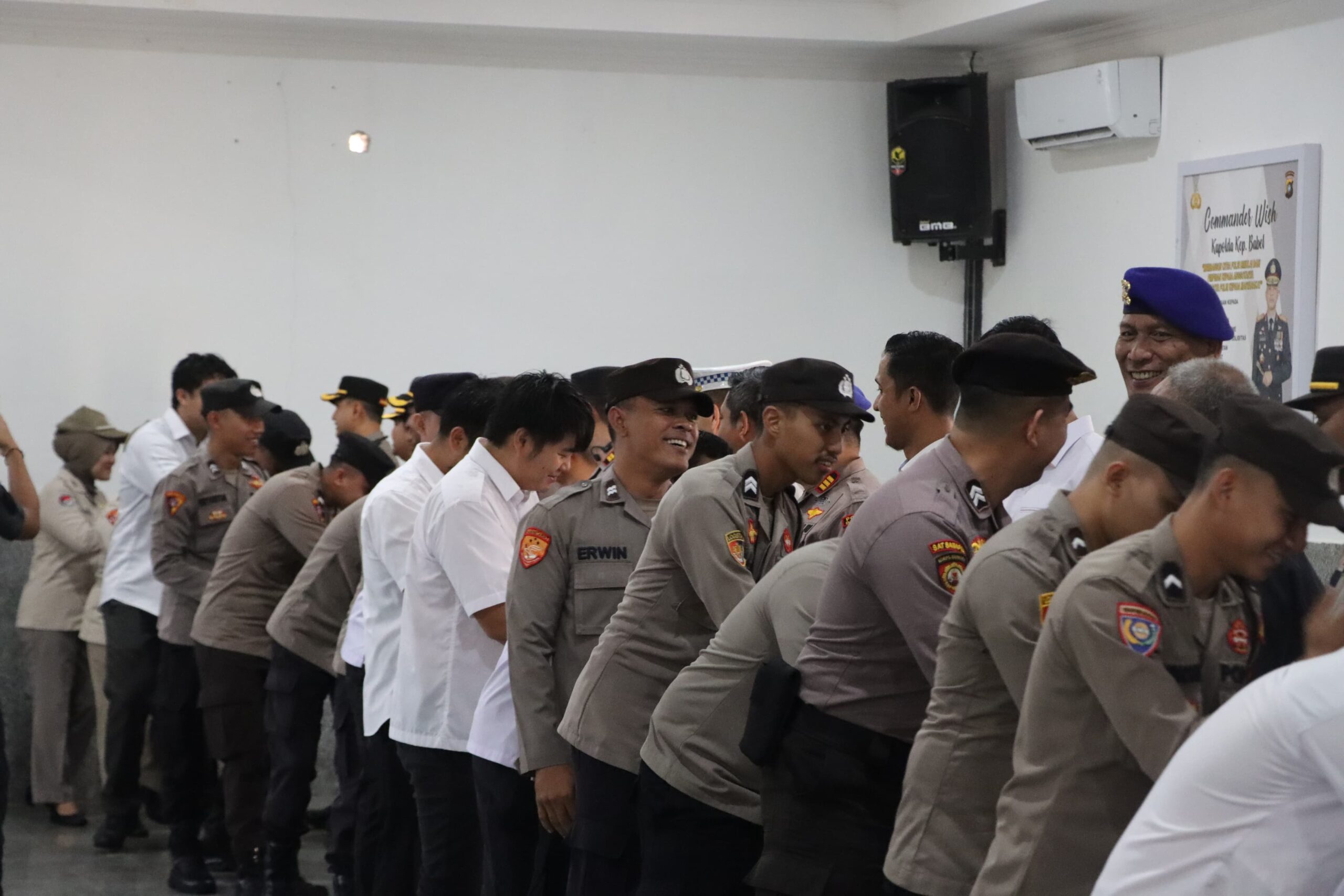 Apel ini juga untuk melakukan pengecekan personel Polres Bangka. Usai apel langsung digelar Halal Bi Halal.