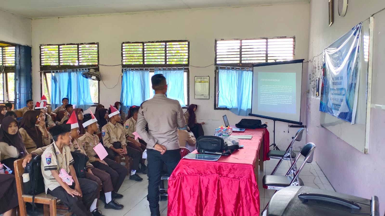 “Remaja harus punya keberanian untuk berkata tidak pada narkoba, tidak pada kekerasan, dan berani melapor jika menjadi korban atau melihat tindak kejahatan,” kata Ipda Tri Nurhadi di hadapan para siswa.