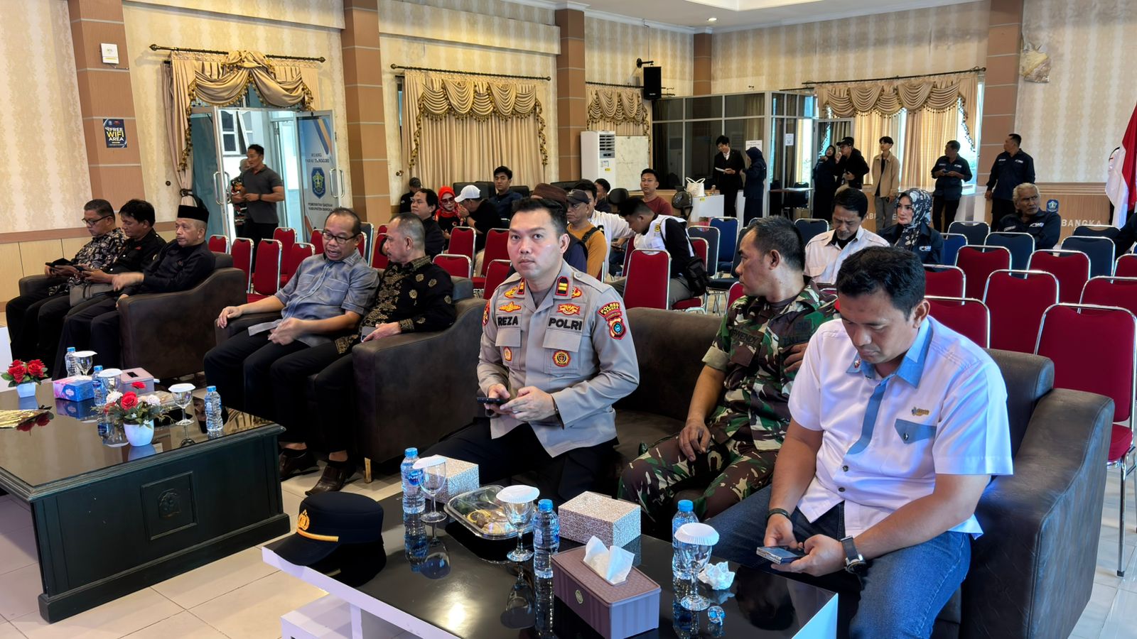 Sungailiat, kejarberita-news.com – Kapolsek Sungailiat IPTU Reza Irawan, S.H., M.H. mewakili Kapolres Bangka menghadiri kegiatan Pelantikan Dewan Pengurus Cabang Serikat Media Siber Indonesia (DPC SMSI) Kabupaten Bangka Periode Tahun 2026–2031, yang digelar pada Sabtu (31/01/2026), bertempat di Ruang Parai Tenggiri Kantor Bupati Bangka.
