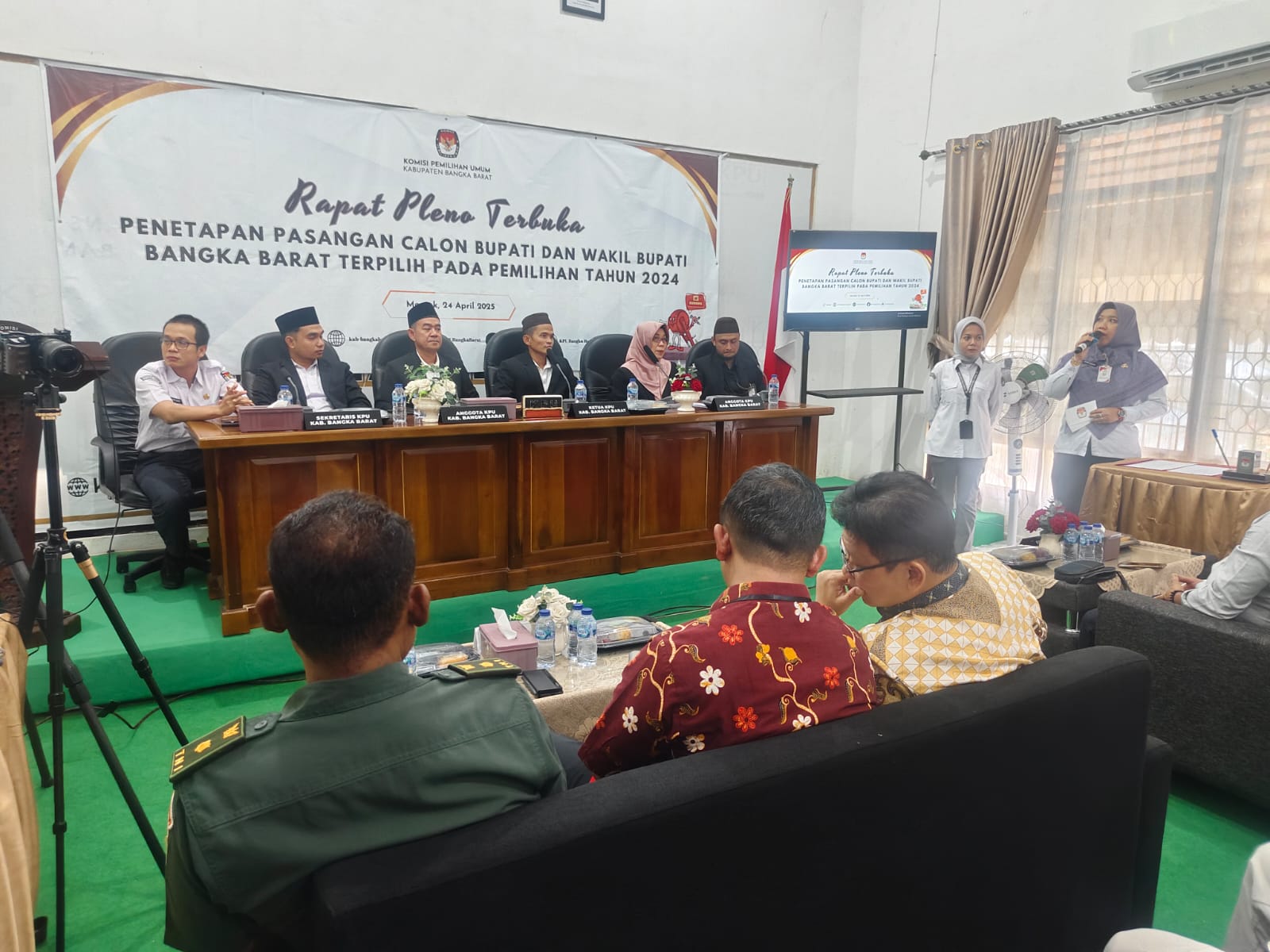 Bangka Barat,kejarberitanews.com- Kasdim 0431/Bangka Barat Mayor CKE Nawawi menghadiri Rapat Pleno Terbuka Penetapan Calon Bupati Dan Wakil Bupati Terpilih Pada Pemilihan Tahun 2024 bertempat di ruang rapat KPU Bangka Barat. Kamis ( 24/04/2025 )