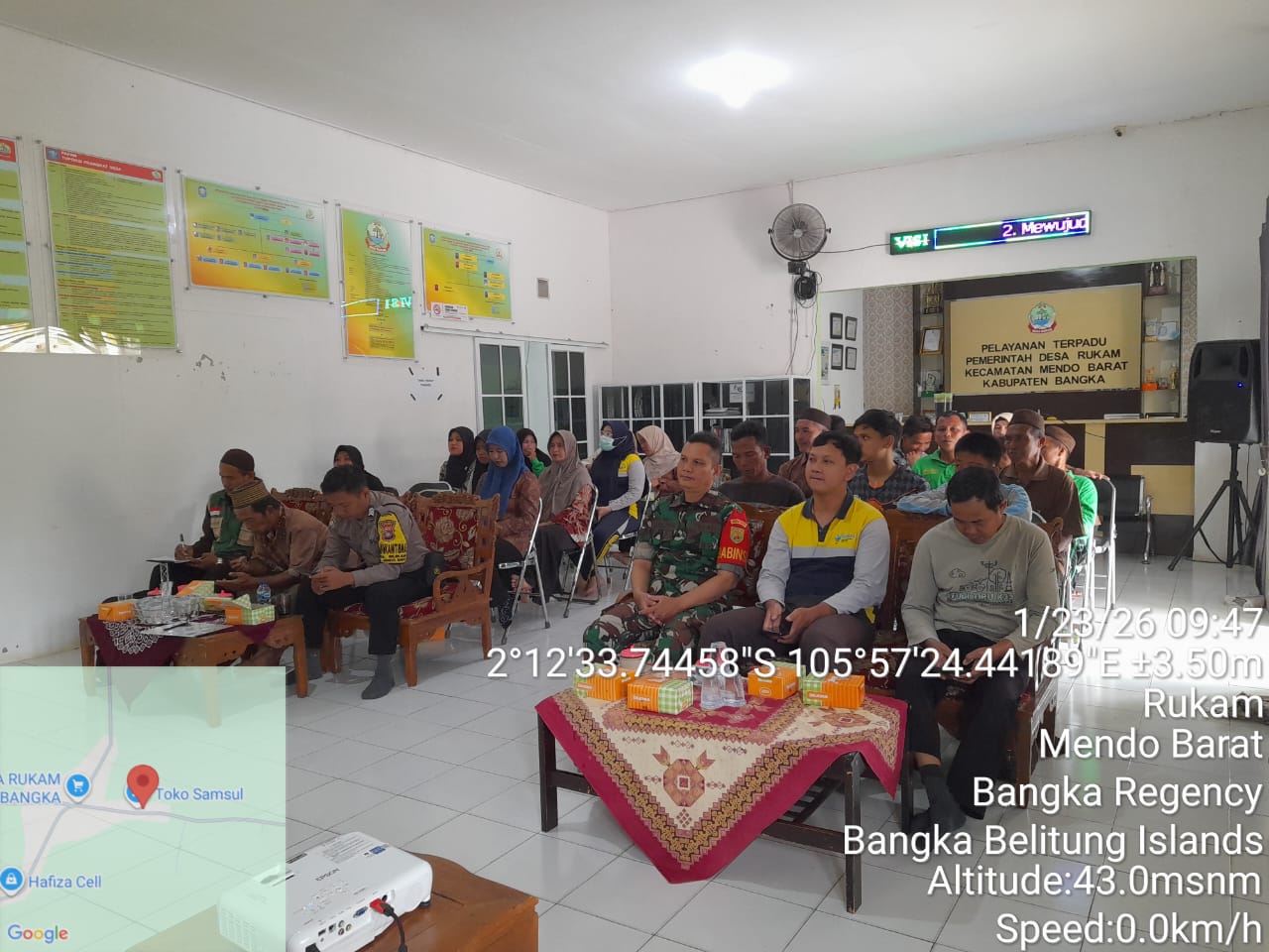 Turut hadir dalam kegiatan tersebut Kepala Desa Rukam, Ketua BPD Desa Rukam, Kasi Kesra Kecamatan Mendo Barat, Kepala Puskesmas Penagan, Kepala Sekolah SD 25 Rukam, Tokoh masyarakat dan perangkat desa setempat.