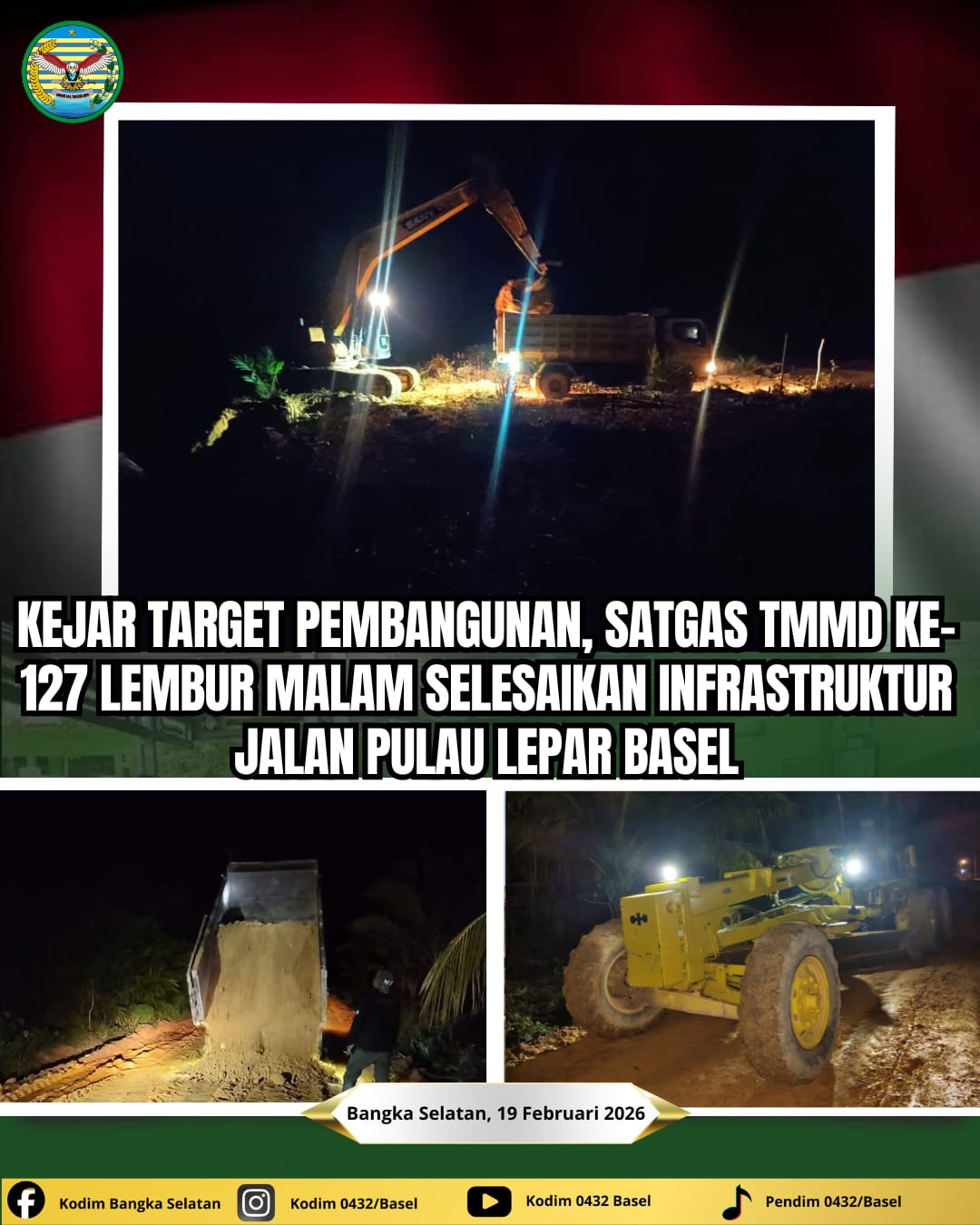 “Kami berkomitmen memberikan yang terbaik bagi masyarakat. Kerja lembur ini merupakan strategi kami untuk mengejar target sasaran fisik agar dapat segera dimanfaatkan oleh warga sebelum penutupan program,” ujar Danki SSK Satgas TMMD Kapten Inf Tri Wahyudi di lokasi kegiatan.