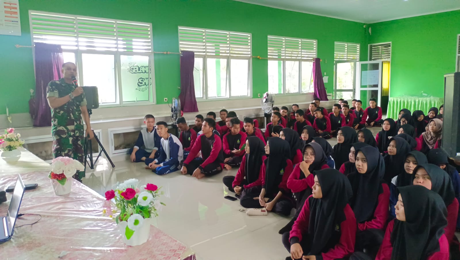 Bangka Barat,kejarberitanews.com- Letda Inf Heru Susyadi Pasi Ter Kodim 0431/Bangka Barat memberi materi bela negara dalam Rangka TNI Manunggal Membangun Desa ( TMMD ) KE – 123 yang di laksanakan Kodim 0431/Bangka Barat. Bertempat di SMAN 1 Jebus Kec. Jebus. Kab. Bangka Barat. Selasa ( 18/03/2025 )