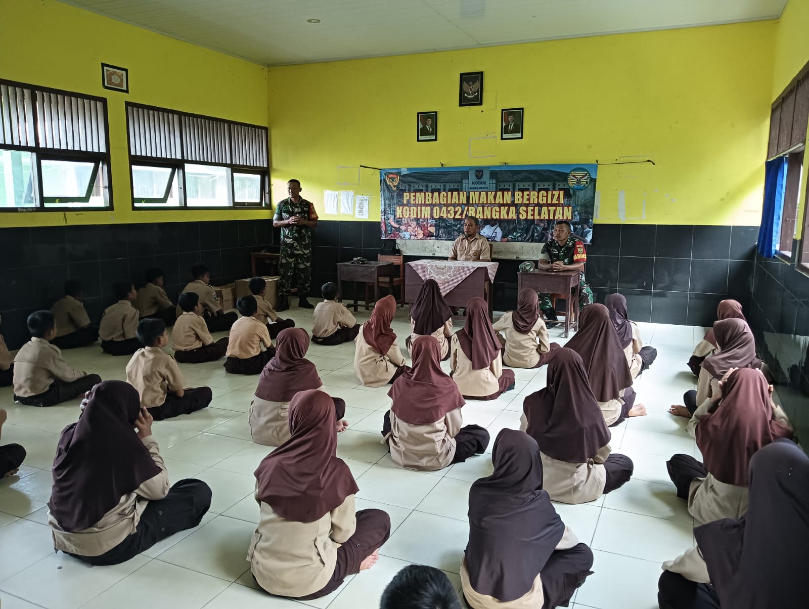 Kodim 0432/Basel Gelar Kegiatan Makan Gratis untuk Siswa SMPN 1 Lepar