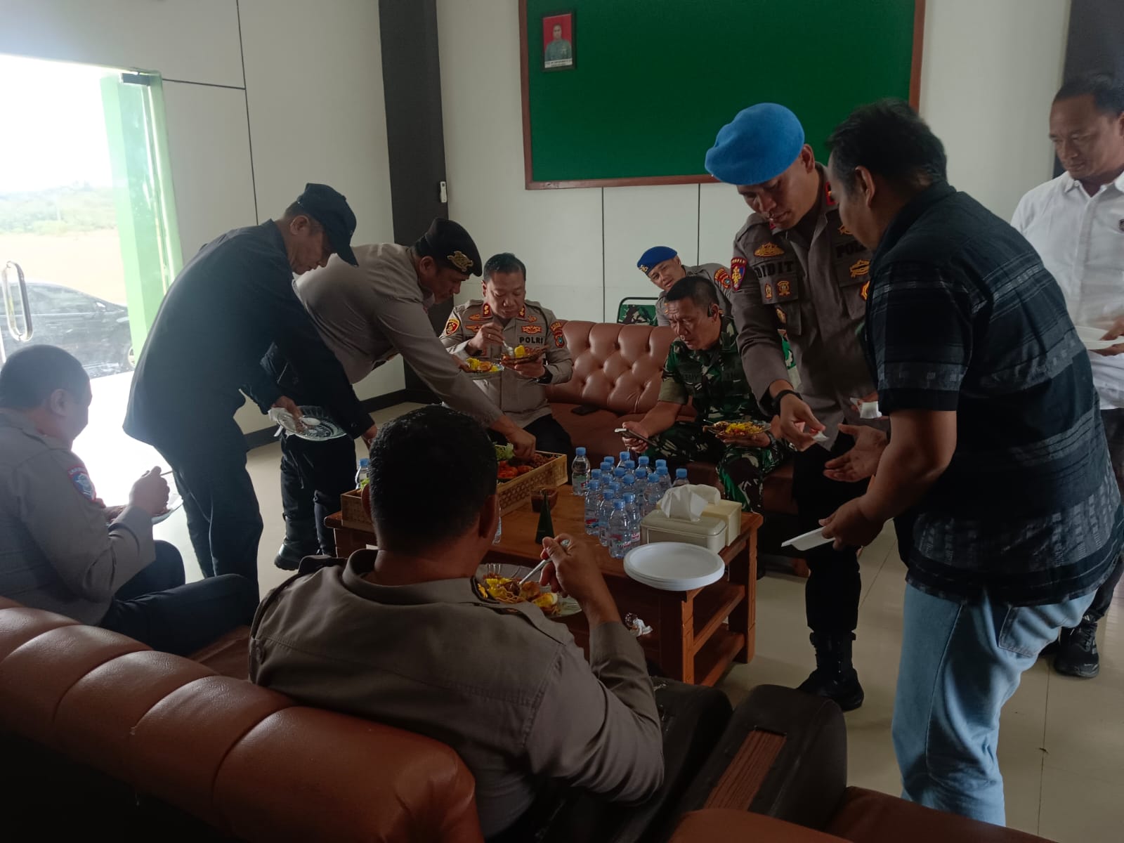 Rombongan Polres Basel yang dipimpin langsung Kapolres AKBP Agus Arif Wijayanto SH.SIK.MH datang ke Makodim 0432/Basel membawa nasi tumpeng jumbo sebagai bentuk ucapan selamat HUT TNI ke-80.