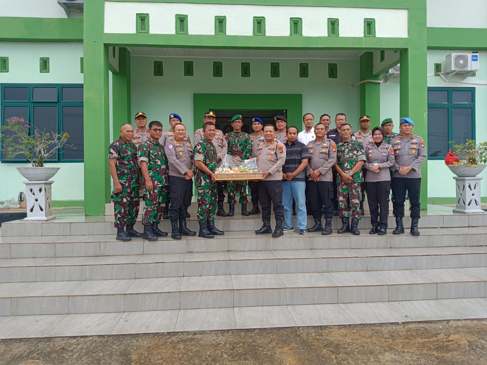 Rombongan Polres Basel yang dipimpin langsung Kapolres AKBP Agus Arif Wijayanto SH.SIK.MH datang ke Makodim 0432/Basel membawa nasi tumpeng jumbo sebagai bentuk ucapan selamat HUT TNI ke-80.