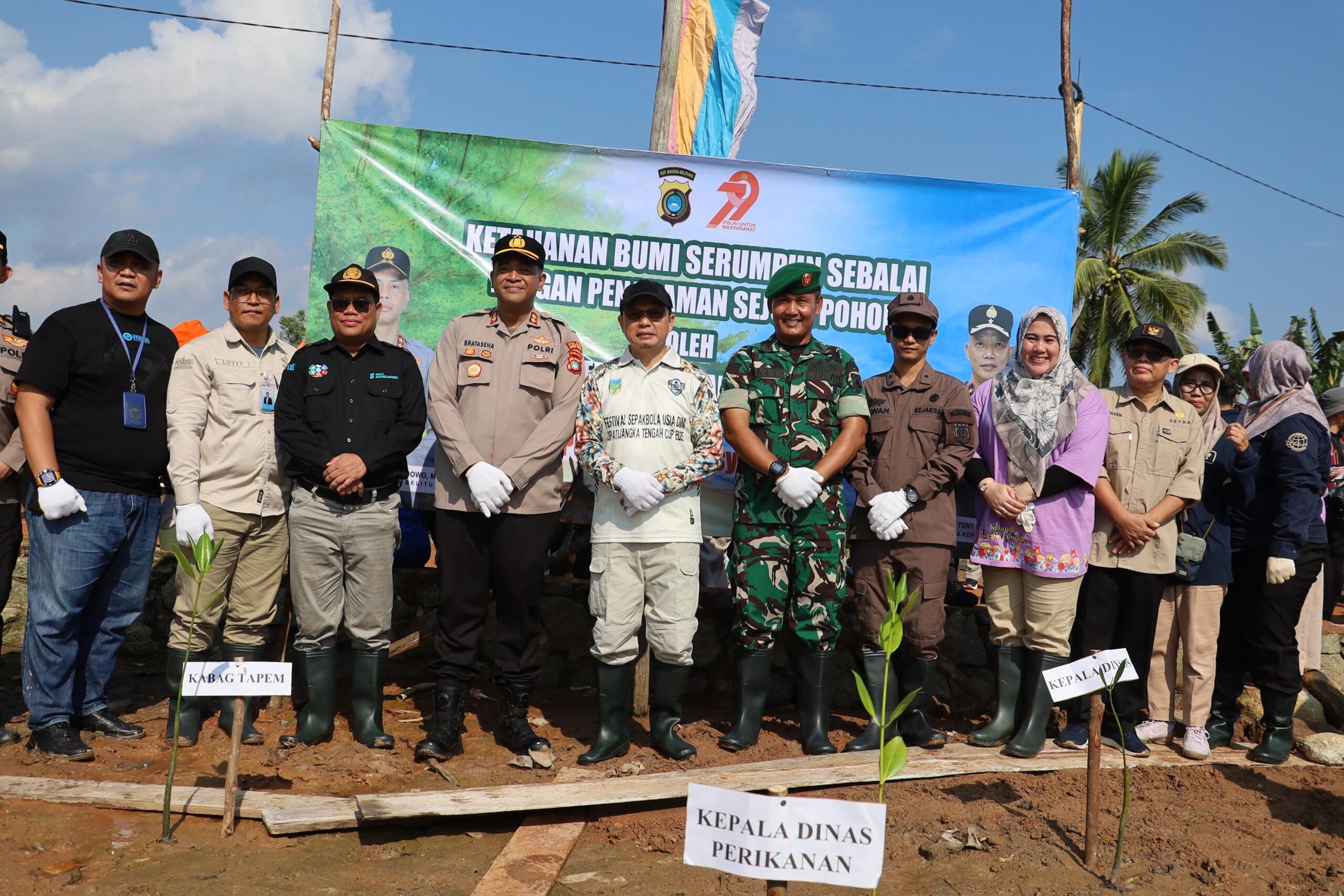 Kolaborasi Lingkungan di Kurau: Kapolres Bangka Tengah Hadiri Aksi Pembongkaran dan Penanaman Mangrove