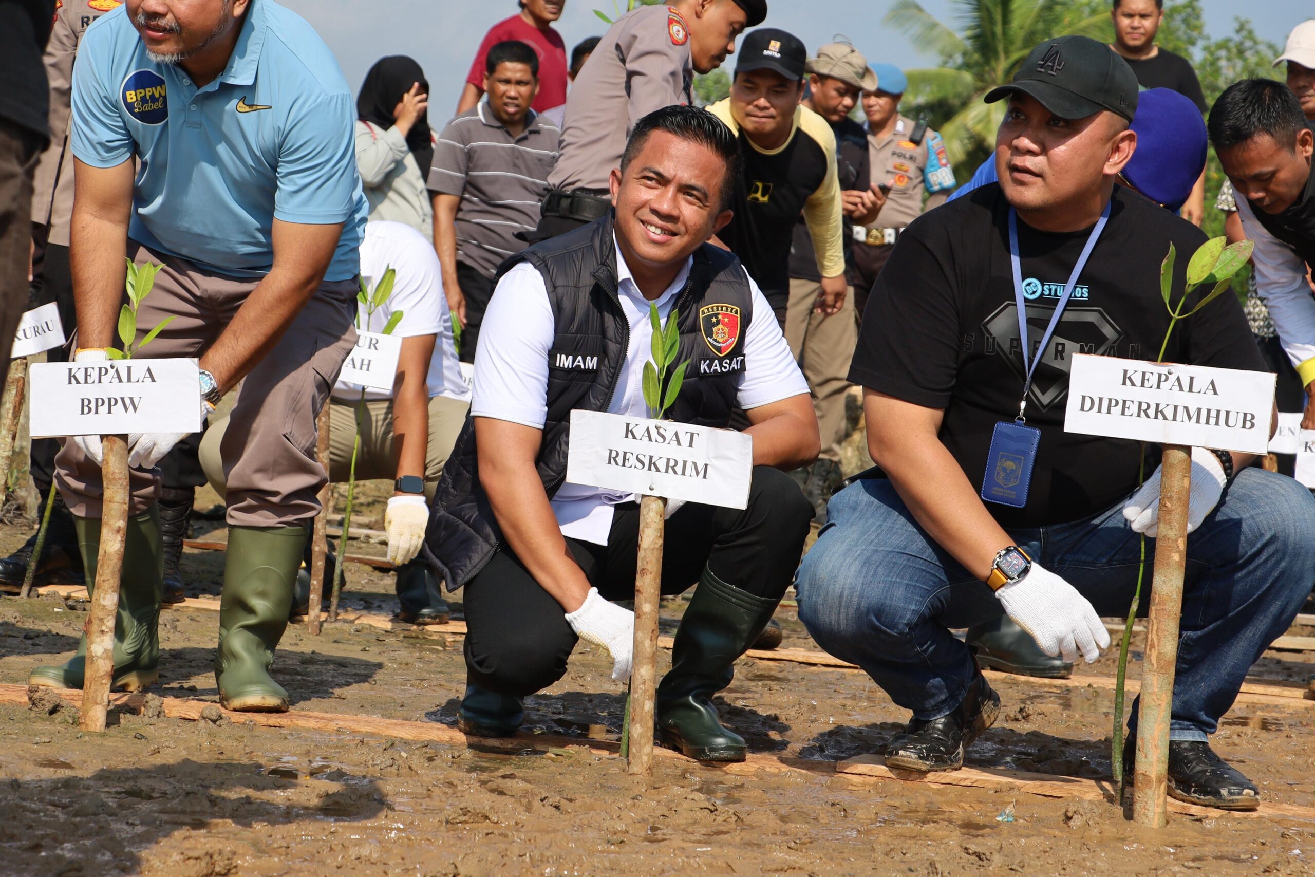 Kolaborasi Lingkungan di Kurau: Kapolres Bangka Tengah Hadiri Aksi Pembongkaran dan Penanaman Mangrove