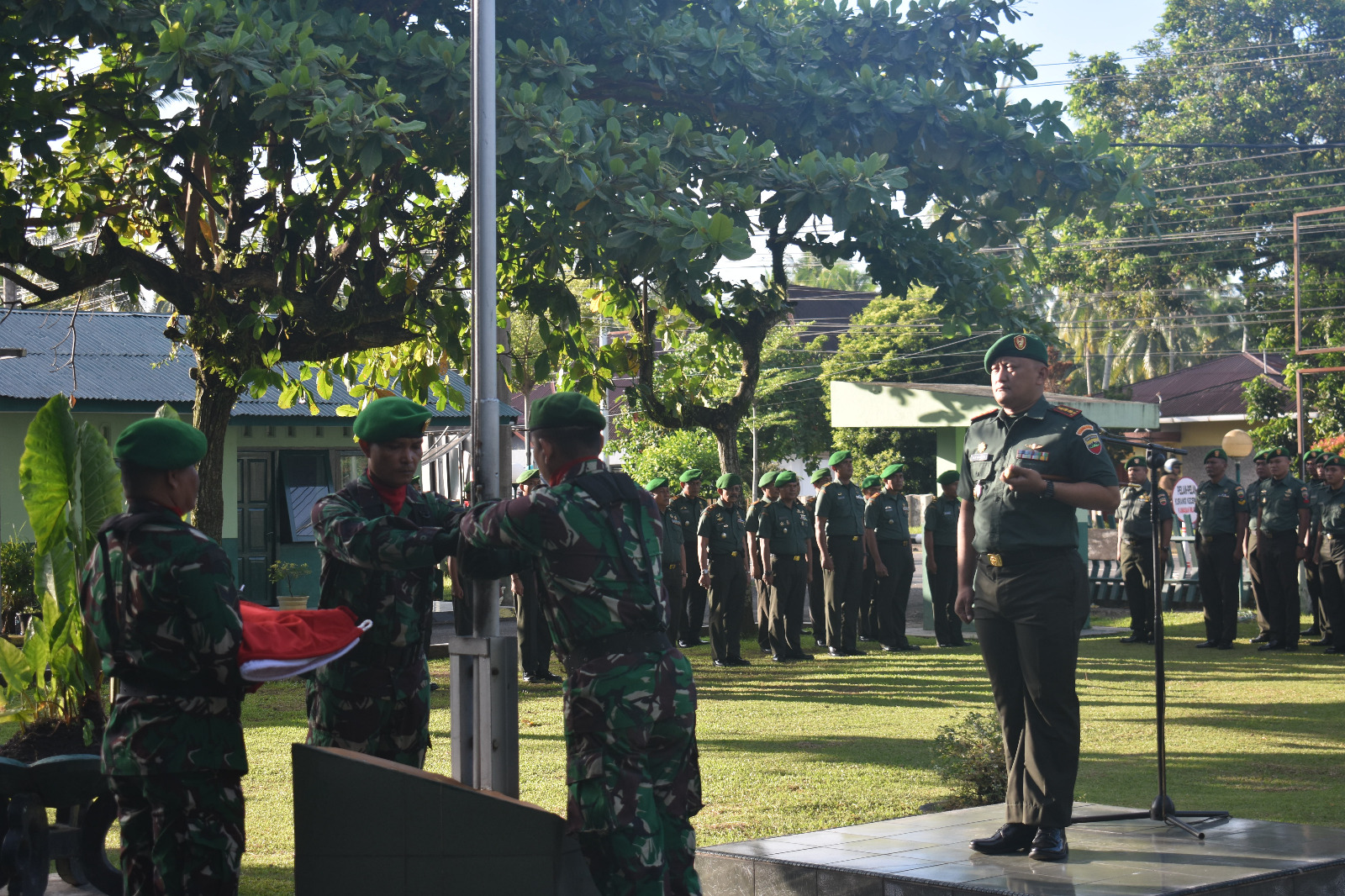 Para Peserta Upacara yang saya hormati, Saat ini tengah memasuki babak baru dalam penguatan fungsi pertahanan Dan perluasan peran TNI dalam menjawab berbagai persoalan bangsa. Disahkanya. Undang-undang Nomor 3 Tahun 2025 tentang perubahan atas Undang-undang Nomor 34 Tahun 2004 tentang TNI merupakan tonggak transformasi strategies Yang menegaskan komitmen negara terhadap modernisasi sistem pertahanan TNI AD mendukung penuh pelaksanaan Undang-undang ini, serta memastikan setiap prajurit memahami dan mengimplementasikanya dengan disiplin dan rasa tanggung jawab tinggi.