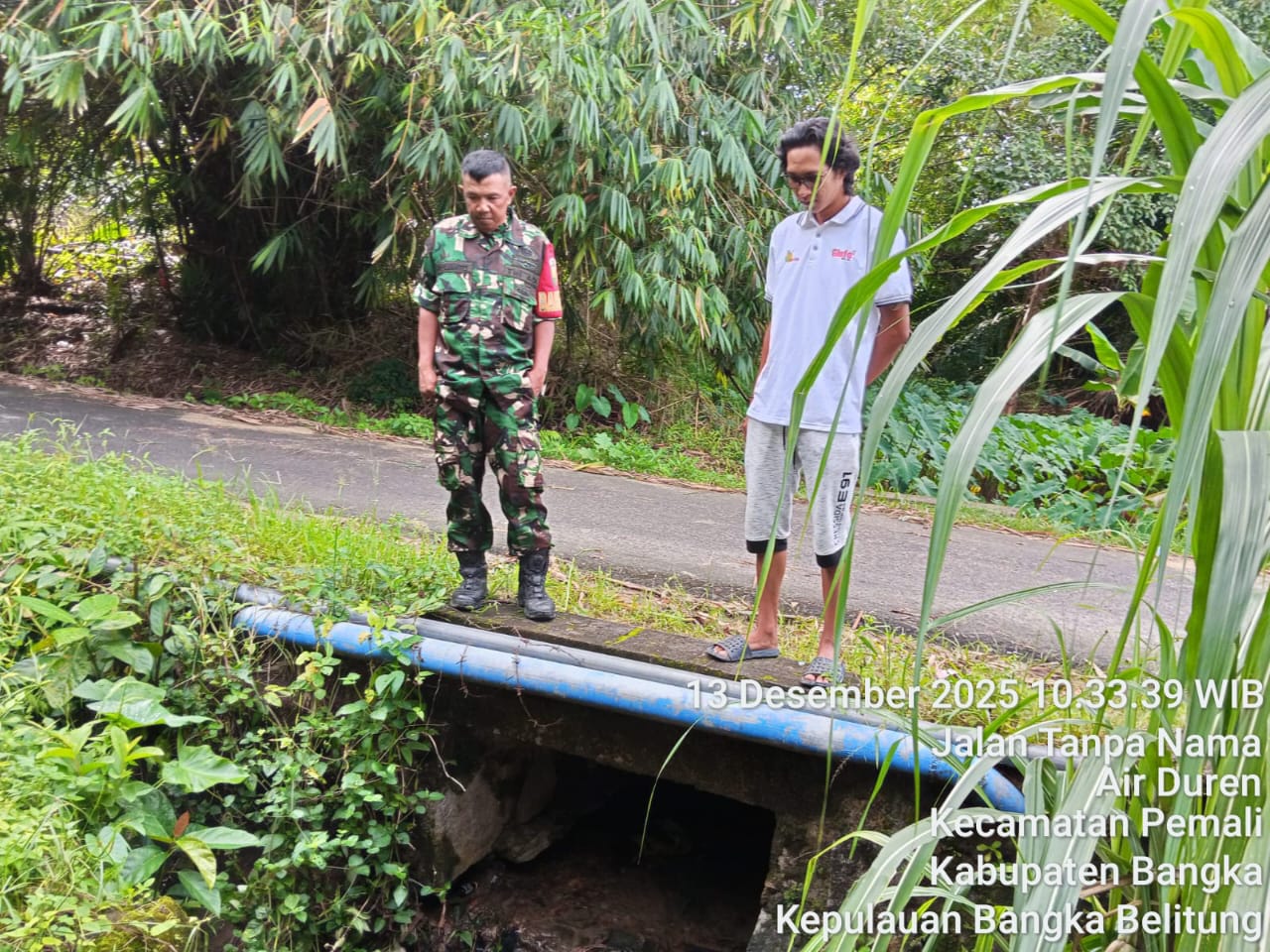 Bangka, kejarberita-news.com – Sertu Yulianto, Babinsa Koramil 413-01/Sungailiat, terus aktif di lapangan guna memastikan kondisi wilayah binaan tetap aman, terutama menjelang puncak musim penghujan melalui komsos dengan Bapak Bayu, Ketua RT 03 Desa Air Duren, Kecamatan Pemali, Sabtu (13/12/2025)