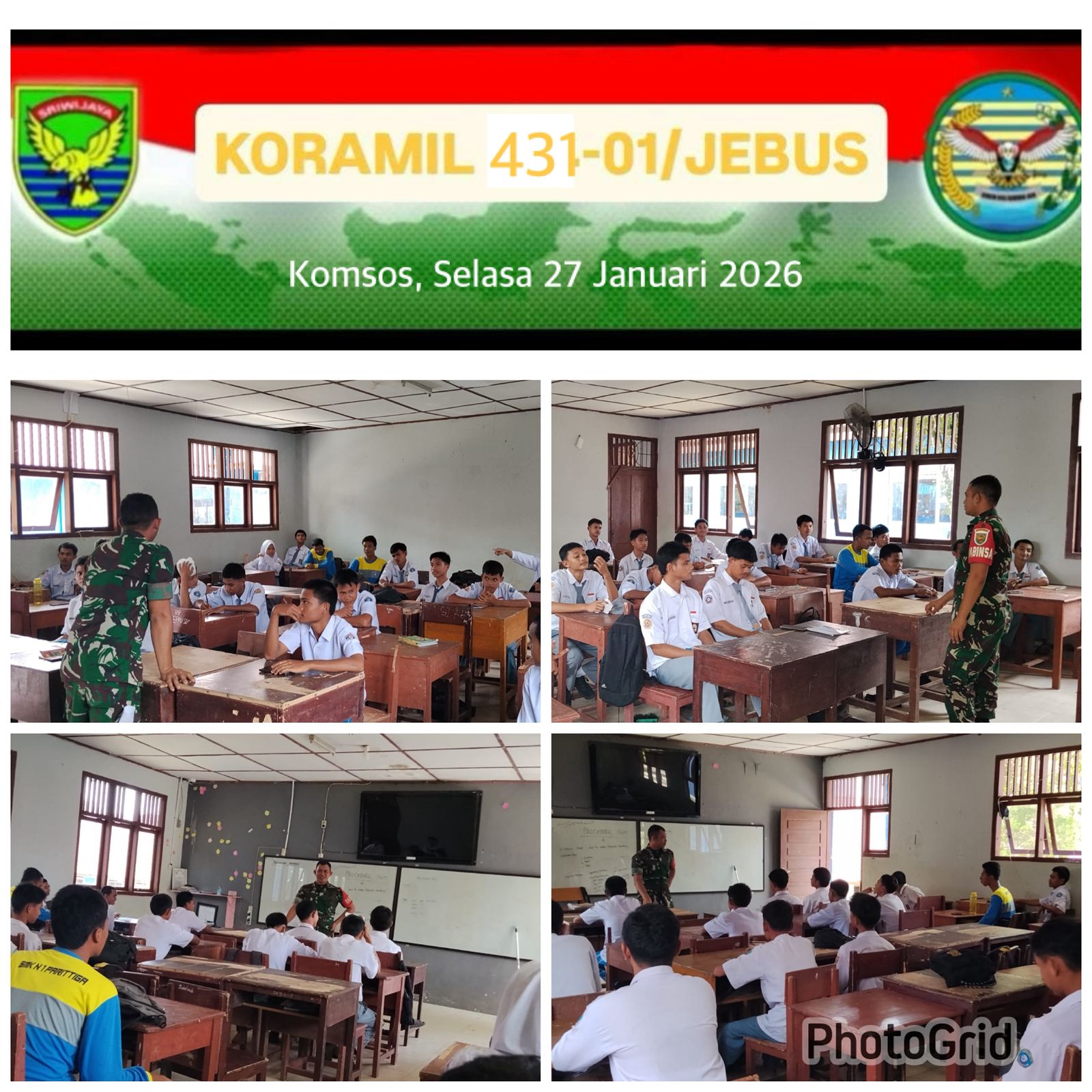 Parit Tiga, kejarberita-news.com – Babinsa Koramil 431-01/Jebus Serda Nando Dwi Putra melaksanakan kegiatan Komunikasi Sosial (Komsos) di SMK Negeri 1 Parittiga, RT 03 Dusun Rambat, Desa Sekar Biru, Kecamatan Parittiga, Kabupaten Bangka Barat.Pada Hari Selasa (27/01/2026)