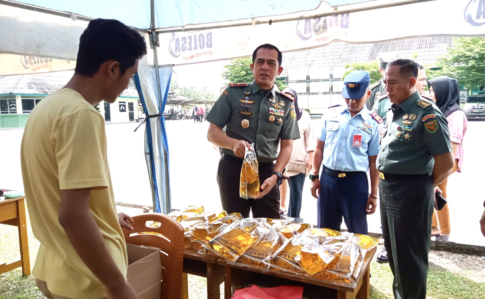 “Kalau di sini jajaran Korem 045/Gaya Provinsi Kepulauan Bangka Belitung, kita pusatkan di sini Kodim 0413/Bangka.” kata Danrem seusai melihat stand Bazar Murah tersebut.