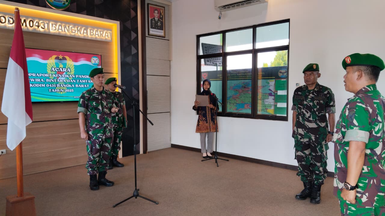 Dalam amanatnya, Dandim 0431/Bangka Barat menyampaikan ucapan selamat dan apresiasi kepada seluruh prajurit yang memperoleh kenaikan pangkat.