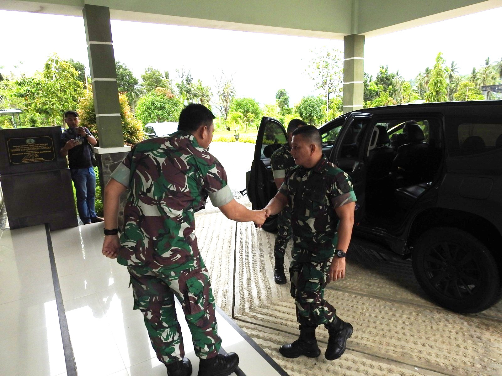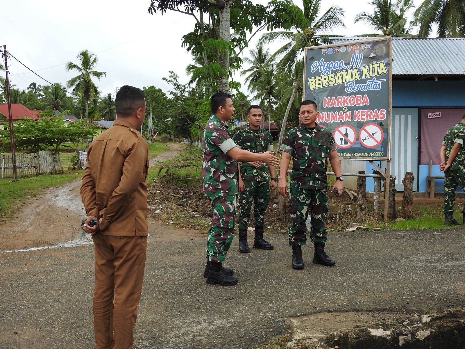 Danrem 133/NW bersama rombongan meninggalkan Makodim 1314/Gorut menuju Posko TMMD di wilayah Ombulodata. Setibanya di lokasi, mereka meninjau posko TMMD yang berada di Kantor Desa Ombulodata.