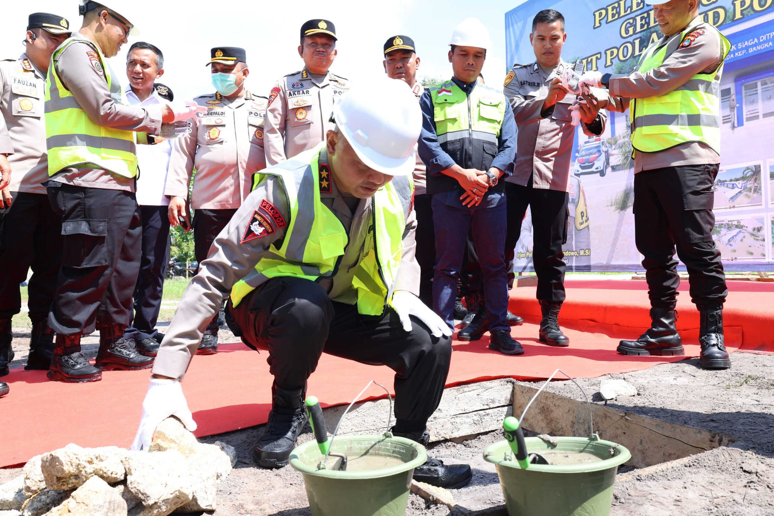 BangkaBelitung,kejarberitanews.com-Kapolda Bangka Belitung Irjen Pol Hendro Pandowo melakukan peletakan batu pertama barak siaga Direktorat Polisi Perairan dan Udara (Ditpolairud) Polda Bangka Belitung, Selasa (3/6/25).