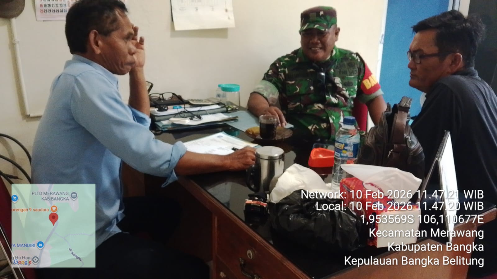 Merawang, kejarberita-news.com – Sinergi demi kesejahteraan masyarakat terus diperkuat di tingkat kewilayahan. Babinsa Koramil 413-03/Merawang, Serka Ali Musthafa, melaksanakan komsos strategis bertempat di Kantor PDAM Tirta Bangka Cabang Merawang, Desa Merawang, Kabupaten Bangka, Selasa (10/02/2026).