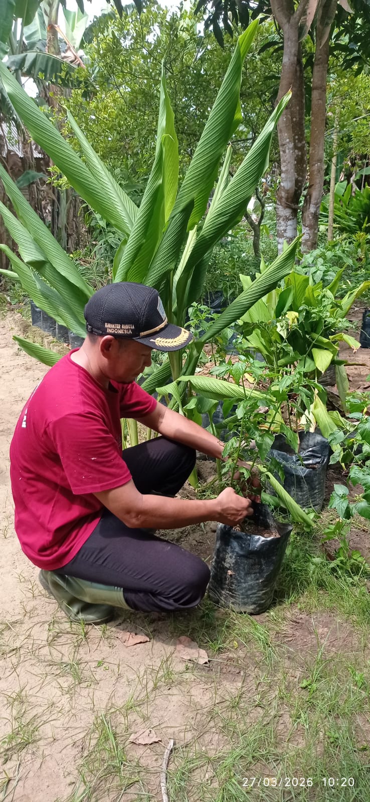 “Terkait dengan pemanfaatan lahan di belakang kantor saat ini kita bertanam, kita jadikan sebagai kebun berkolaborasi dengan ibu-ibu PKK dan juga PKWT, di sini ada hidroponik, cabai, laos, kunyit dan tanaman lainnya. Dari ini ibu-ibu bisa menyebarkan ataupun menularkan kemampuannya kepada masyarakat yang ada di lingkungannya,” ujarnya.