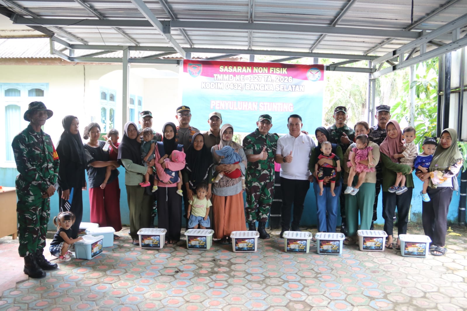 Pulau Lepar Toboali, kejarberitanews.com – Menyasar kepada balita resiko stunting & Lansia di desa Penutuk satgas TMMD reguler ke 127 Kodim 0432/Basel berkolaborasi dengan Ketua Tim Wasev TMMD ke 127 TA. 2026, Wakil Inspektur Jenderal TNI Angkatan Darat Mayjen TNI M. Muchidin., S. SOS Beserta Frokopimda Basel menyerahkan bantuan berupa nutrisi makanan tambahan bagi Bayi Stunting dan Lansia mereka berhak mendapatkan di laksanakan di aula balaidesa Penutuk Pulau Lepar.