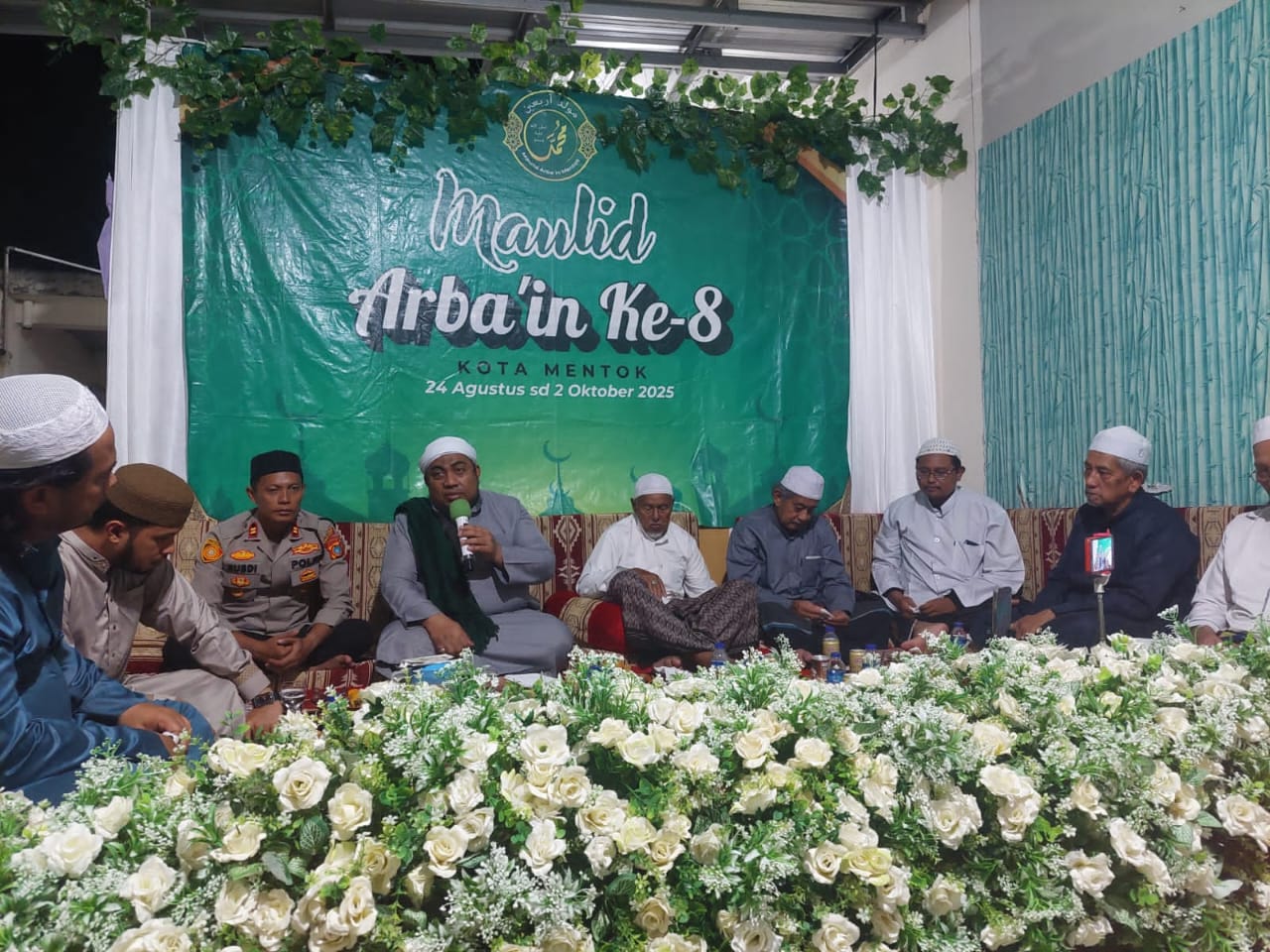 Bangka Barat, kejarberita-news.com – Kapolres Bangka Barat AKBP Pradana Aditya Nugraha, S.H., S.I.K. melalui Ps. Kasi Humas Polres Bangka Barat Iptu Yos Sudarso menyampaikan bahwa kegiatan Maulid Arba’in ke-8 Kota Mentok berjalan lancar, aman, dan penuh khidmat pada Kamis (2/10/2025) malam.