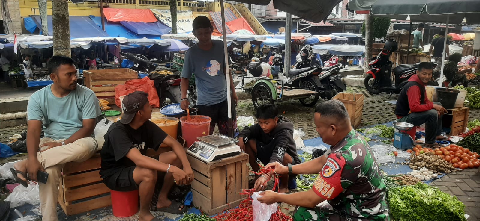 Pariaman, kejarberita-news.com – Selalu Babinsa Sertu Jon Endri Menjalin hubungan Silaturahmi yang baik dengan Pedagang Pasar Pariaman dan warga binaan adalah merupakan salah satu tugas pokok Babinsa , Salah satunya yaitu dengan melakukan komunikasi sosial (Komsos) dalam menciptakan interaksi serta kekompakan antara Babinsa dengan warga binaan Satpam dan Pedagang Pasar Pariaman