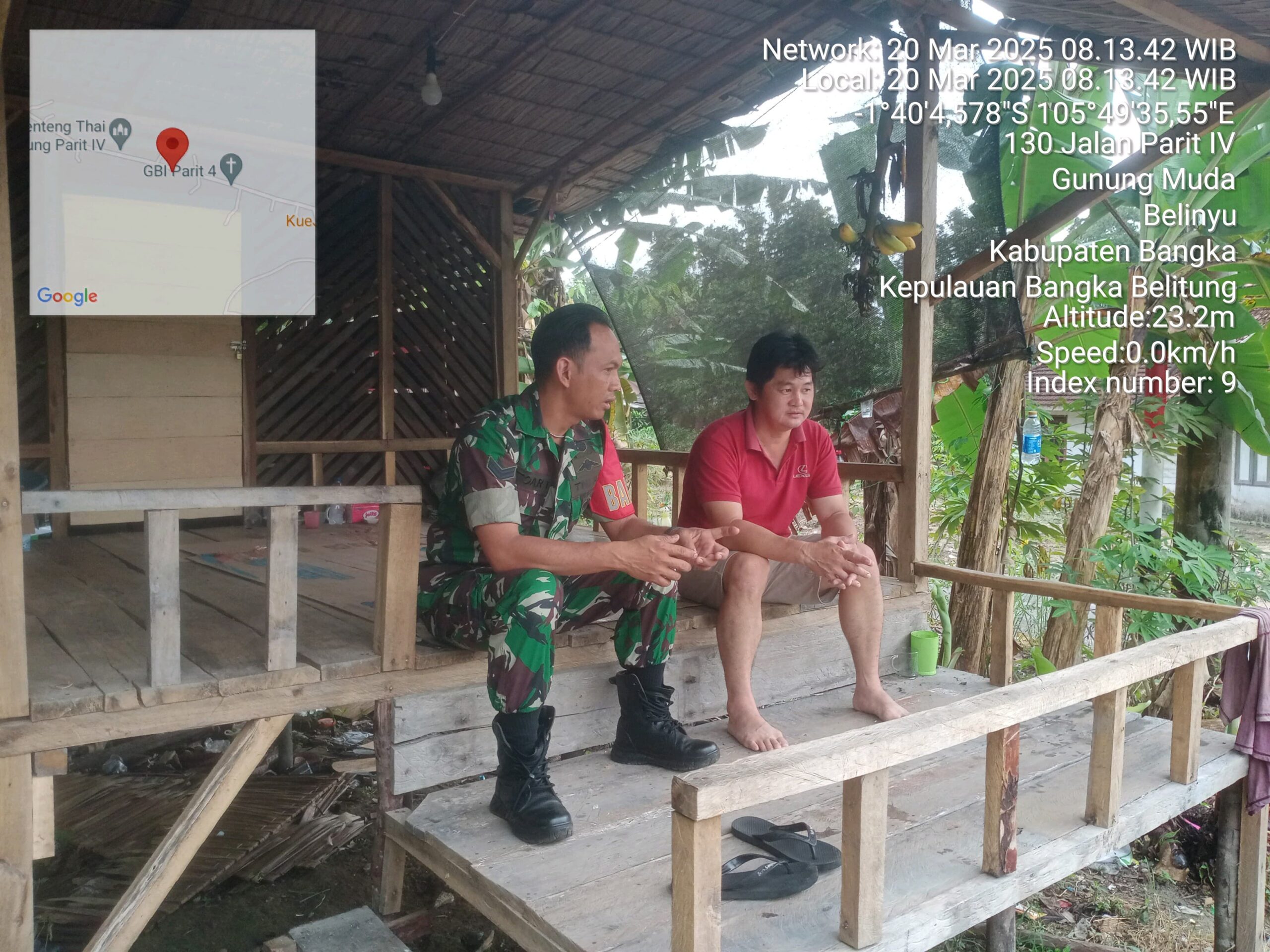 Melalui komsos babinsa koramil 413-02/Belinyu ajak warga aktifkan kembali siskamling untuk tingkatkan keamanan