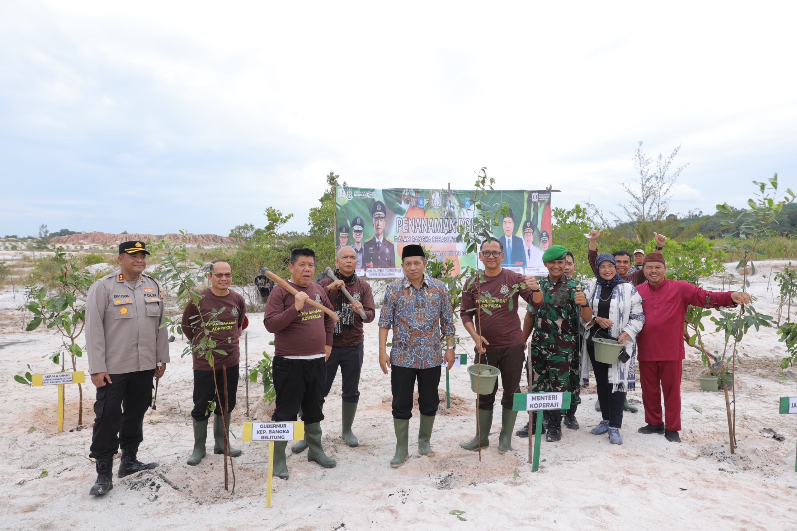 Penanaman dilakukan secara simbolis oleh Menkop RI Ferry Juliantono, Gubernur Hidayat Arsani, Jamintel Reda Manthovani, Kajati Babel Sila Haholongan Pulungan, Bupati Algafry Rahman beserta jajaran Forkopimda, dan ditutup dengan pelepasan ratusan burung.